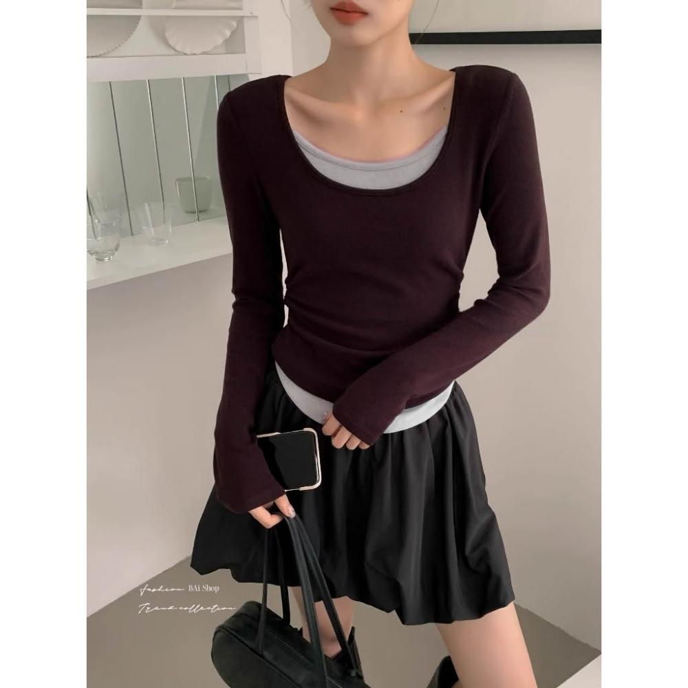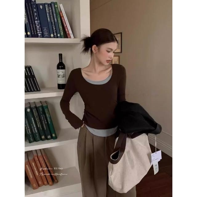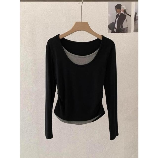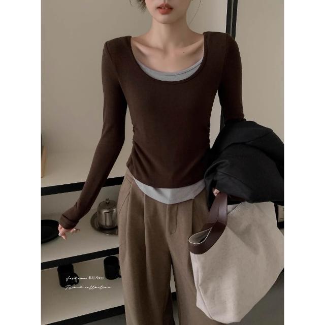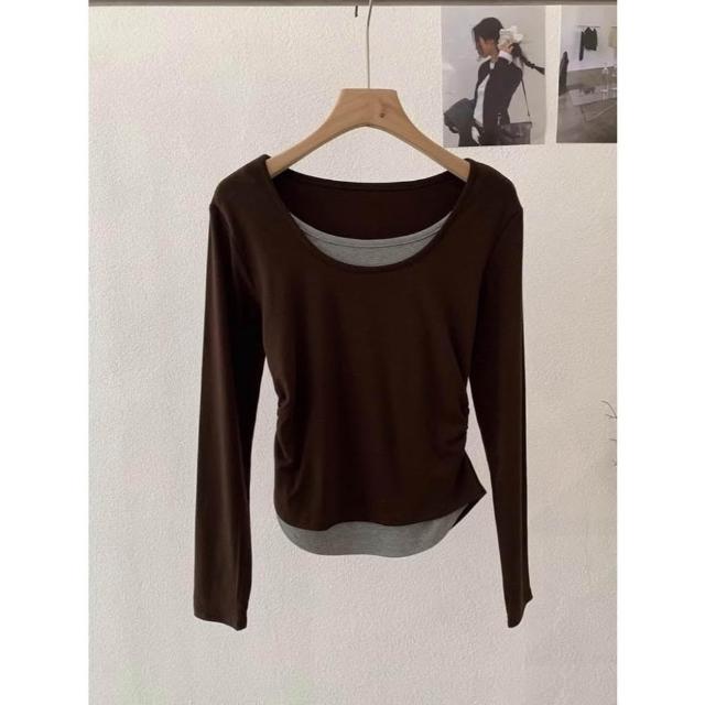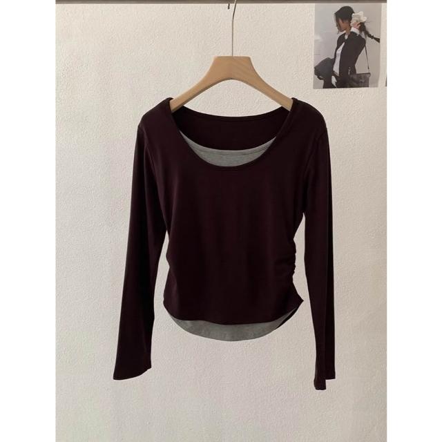 BAi 白媽媽假兩件上衣/撞色褶皺收腰 修身顯瘦款-350589 現貨+預購