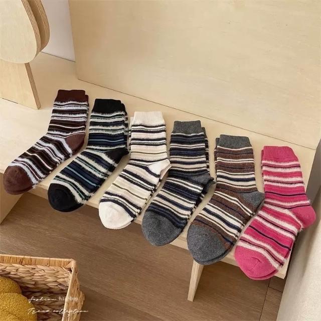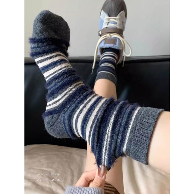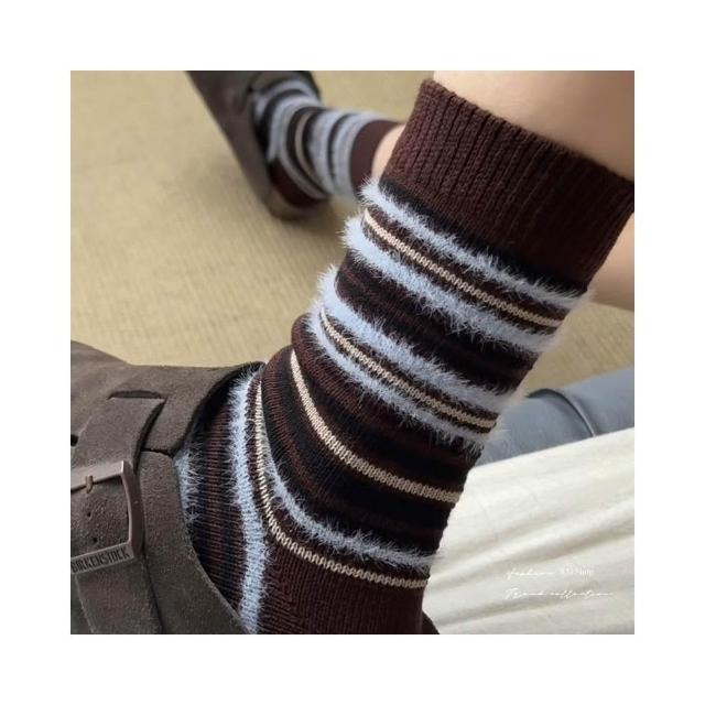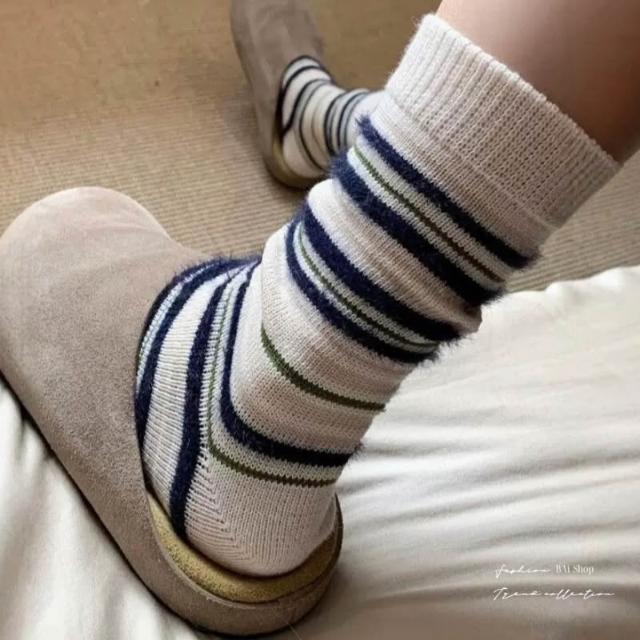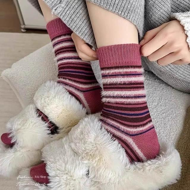 BAi 白媽媽條絨紋襪/日系ins潮百搭甜美秋冬中筒襪-356244 現貨+預購