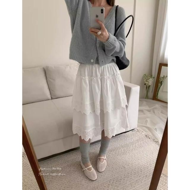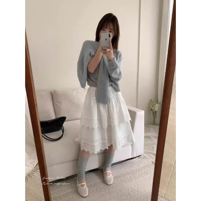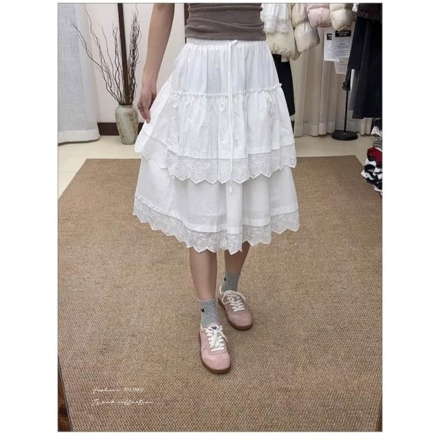 BAi 白媽媽白色蛋糕裙/高腰甜美蕾絲中裙-360014 現貨+預購