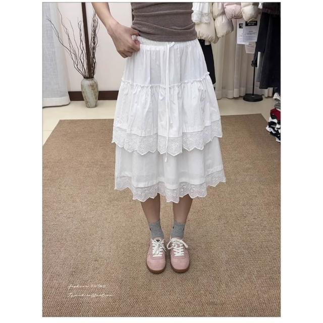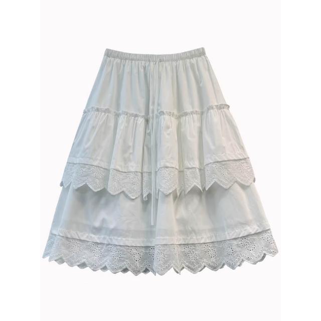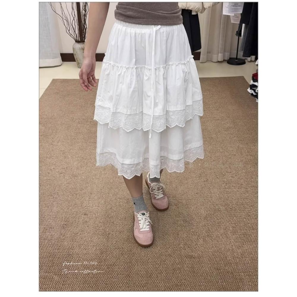 BAi 白媽媽白色蛋糕裙/高腰甜美蕾絲中裙-360014 現貨+預購