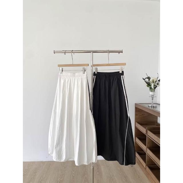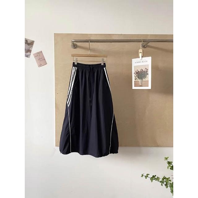 BAi 白媽媽抽繩工裝長裙/美式休閒顯瘦大口袋鬆緊腰A字工裝燈籠裙-360048 現貨+預購