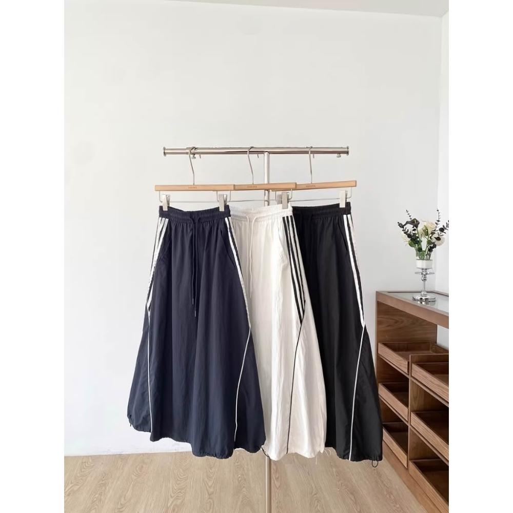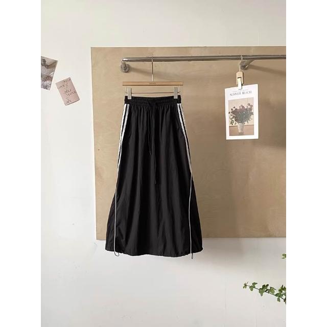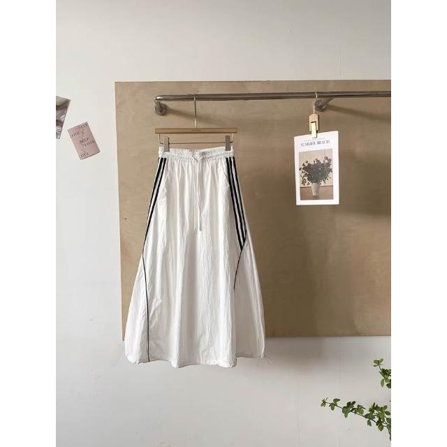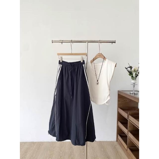 BAi 白媽媽抽繩工裝長裙/美式休閒顯瘦大口袋鬆緊腰A字工裝燈籠裙-360048 現貨+預購