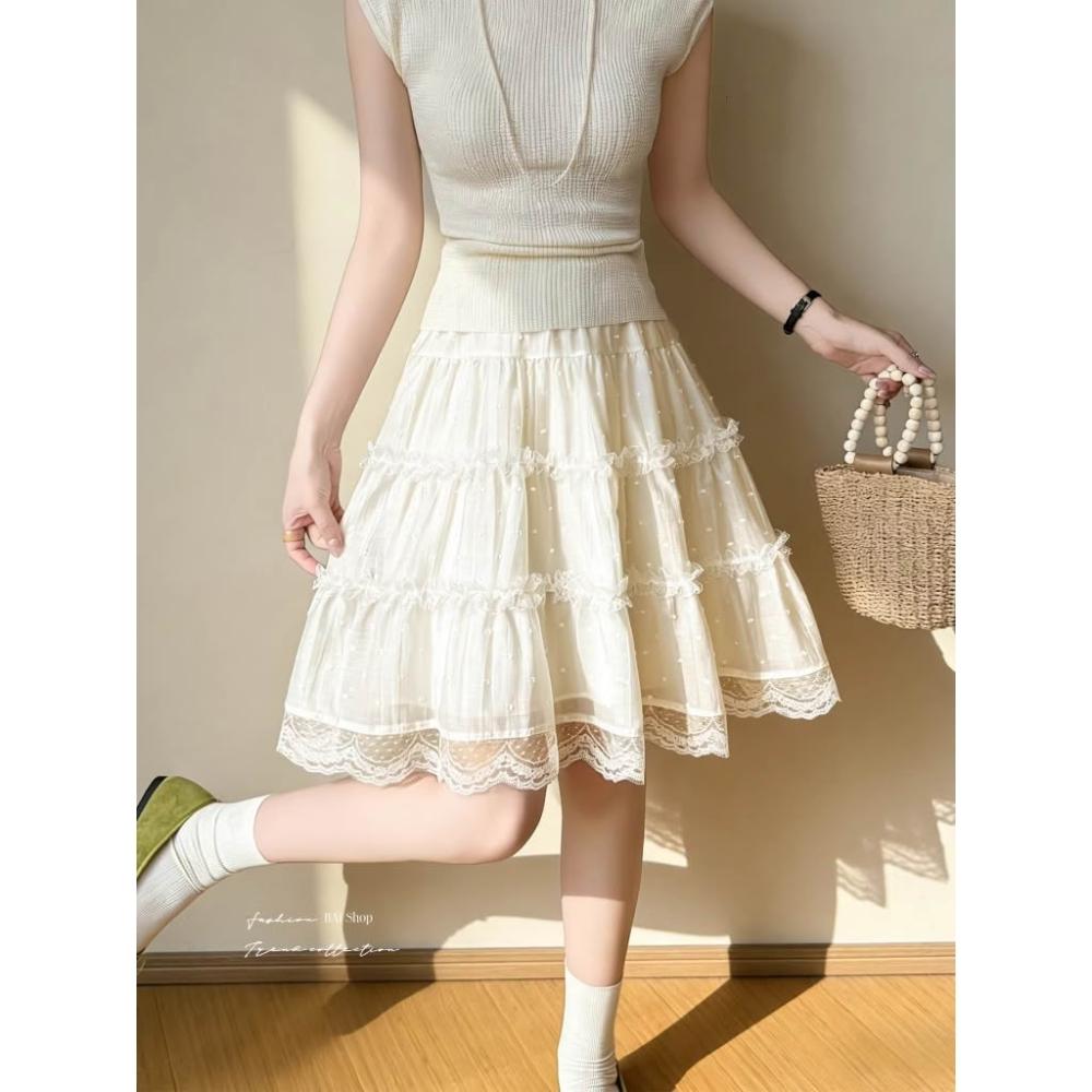 BAi 白媽媽鏤空蕾絲蛋糕短裙/韓系甜美多層次網紗裙-360084 現貨+預購