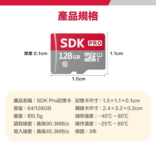 *小珍* 免運 SDK Pro 128GB 高速記憶卡 SD卡套 支援手機平板監視器(三年保固)