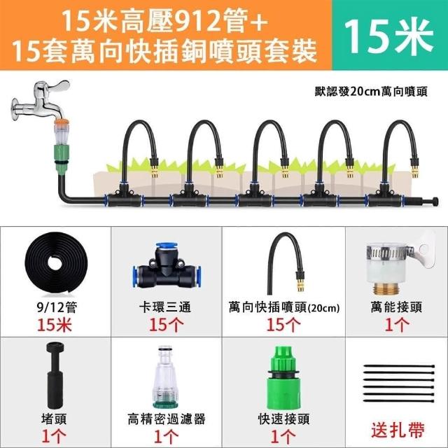 自動定時萬向澆花噴頭 可調霧化噴淋頭 花盆噴淋器快插式接頭 15米912管+15套萬向套裝 1111campaign