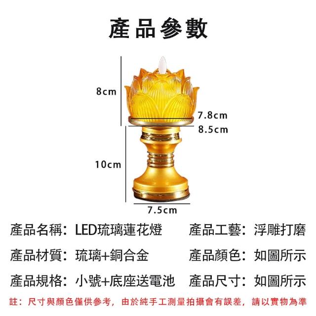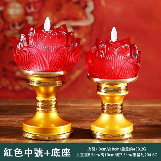 美物LED電子蓮花燈 琉璃蓮花燈 供奉燈紅色中號+底座附電池 長明燈 1111campaign