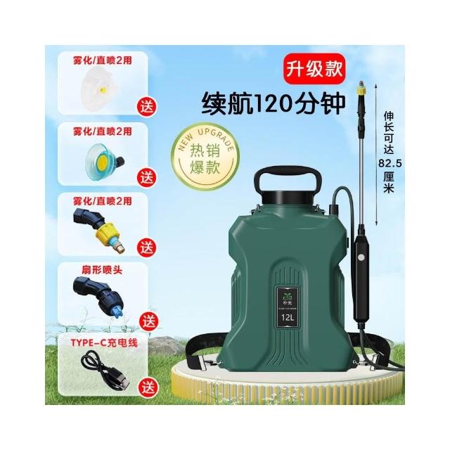 12L電動噴霧器 農用噴灑水壺 高壓鋰電噴霧機 消毒機 打藥澆花背負式打藥機 園林噴霧消毒 噴水壺 強勁出水 持久續航