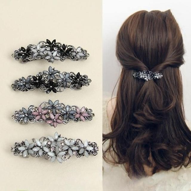 PoemAcc 珍珠水鑽彈簧夾 合金髮夾 媽媽髮夾(優雅馬尾夾 彈簧夾 髮飾)