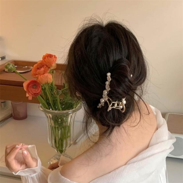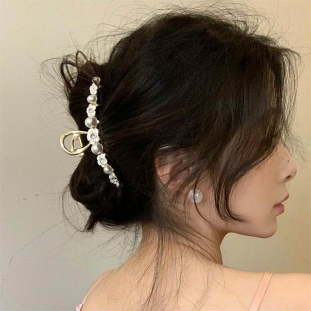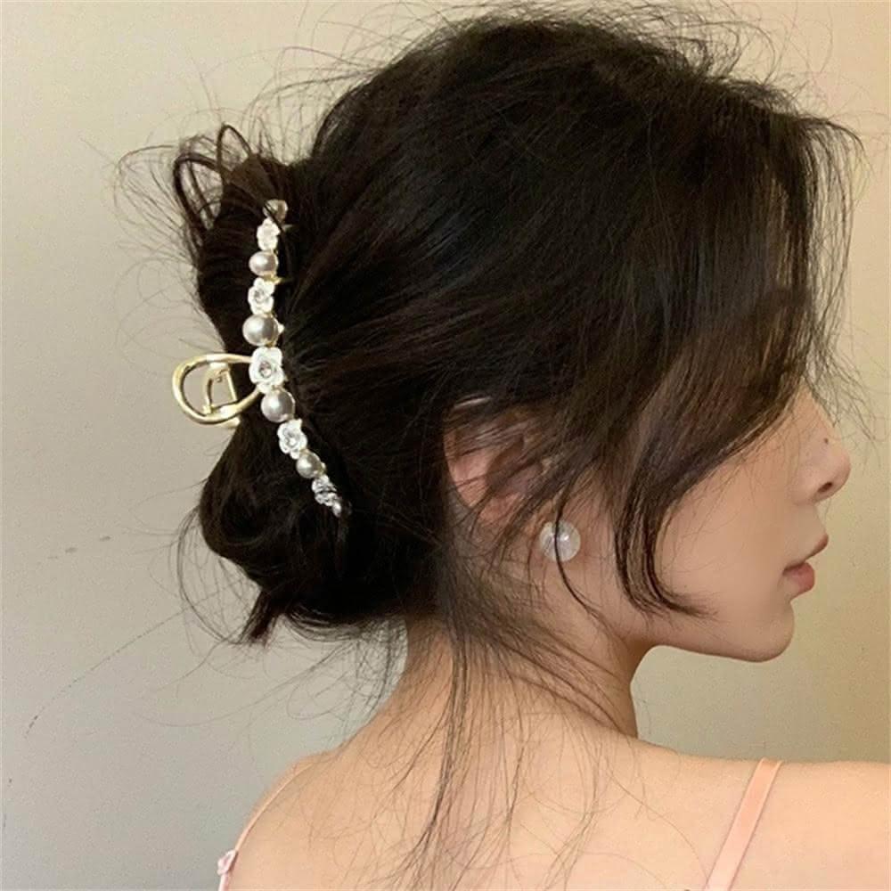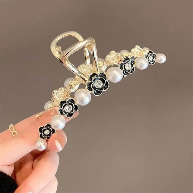 Poem-Acc 山茶花髮夾 大鯊魚夾 山茶花珍珠水鑽髮夾(優雅茶花髮夾 馬尾夾 髮飾)