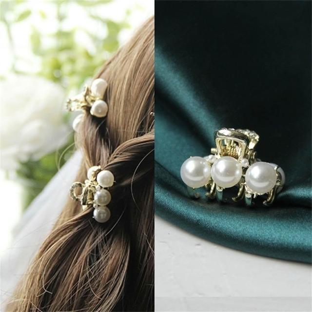 Poem-Acc買一送一 日常必備款 珍珠水鑽劉海夾 小鯊魚夾(髮盤髮飾 珍珠水鑽小抓夾) 新娘髮夾