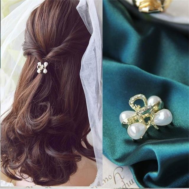 Poem-Acc買一送一 日常必備款 珍珠水鑽劉海夾 小鯊魚夾(髮盤髮飾 珍珠水鑽小抓夾) 新娘髮夾