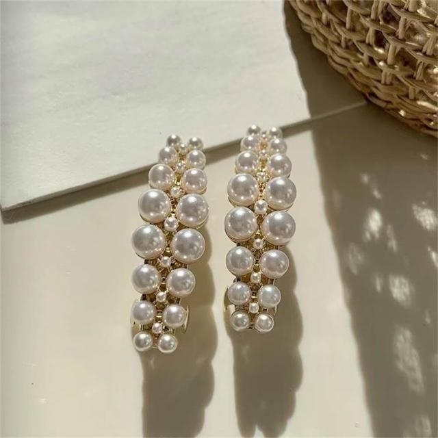 Poem-Acc珍珠蝴蝶結 雨滴水鑽珍珠彈簧夾 韓版 時尚側邊 劉海髮飾 髮夾
