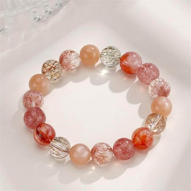 Poem-Acc彩色發晶手串 水晶煙花串珠手鏈 草莓晶 太陽石 黑金手鏈串 高級感彩發晶 紅膠花手串 手鏈 手練