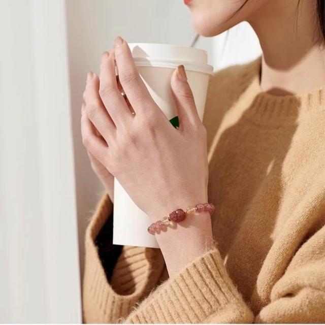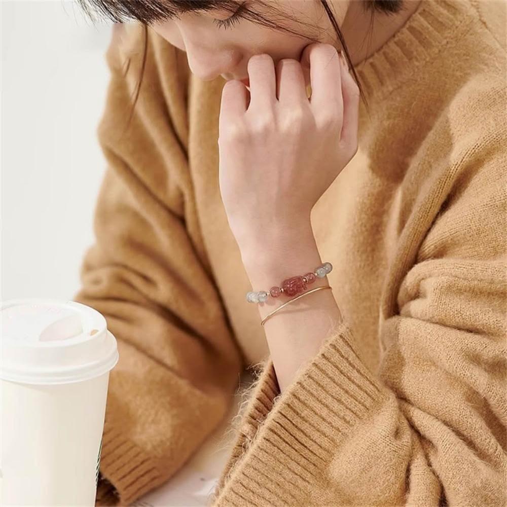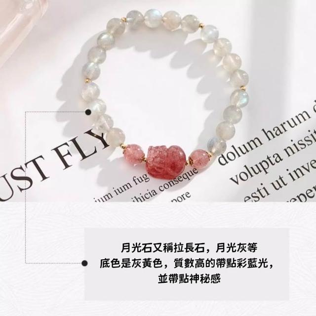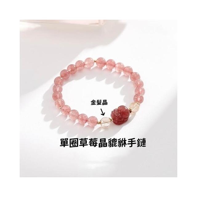 Poem-Acc 天然草莓晶貔貅手鏈 水晶手鏈 天然月光石貔貅手鏈 水晶手鏈 手鏈 手串
