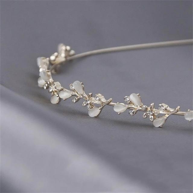 Poem-Acc樹葉貓眼石髮箍 伴娘髮箍 珍珠水鑽髮箍 新娘髮飾 表演用髮飾 髮飾