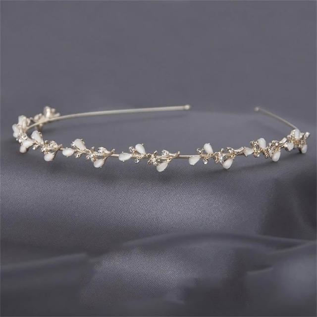 Poem-Acc樹葉貓眼石髮箍 伴娘髮箍 珍珠水鑽髮箍 新娘髮飾 表演用髮飾 髮飾