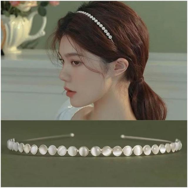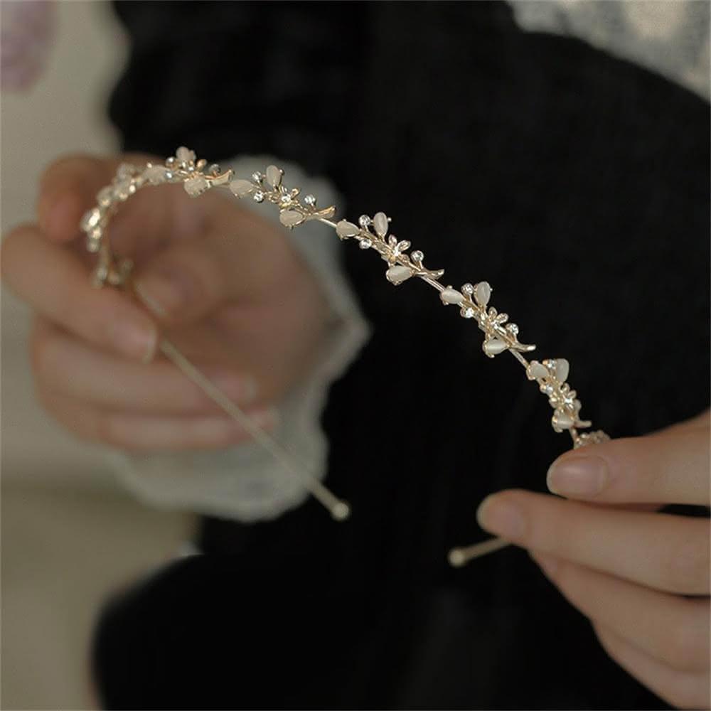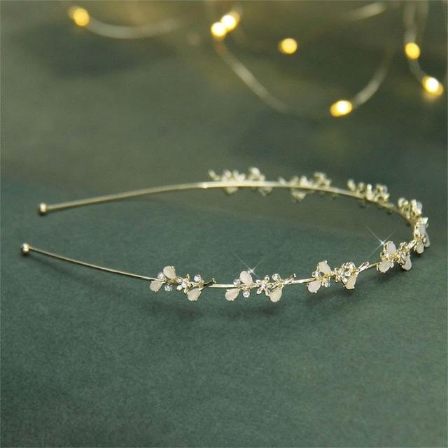 Poem-Acc樹葉貓眼石髮箍 伴娘髮箍 珍珠水鑽髮箍 新娘髮飾 表演用髮飾 髮飾