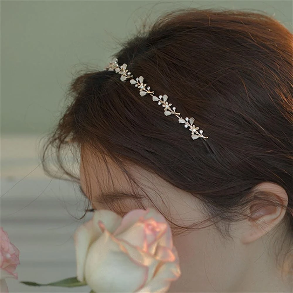 Poem-Acc樹葉貓眼石髮箍 伴娘髮箍 珍珠水鑽髮箍 新娘髮飾 表演用髮飾 髮飾