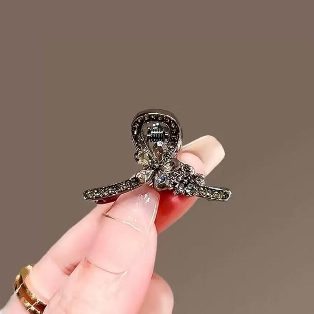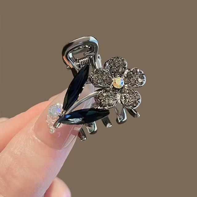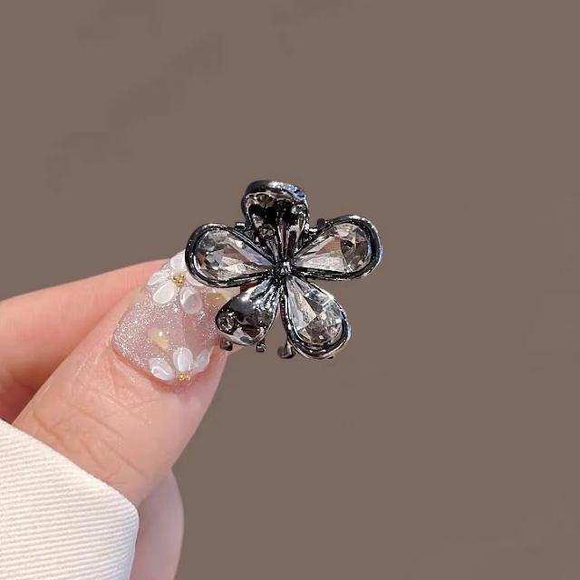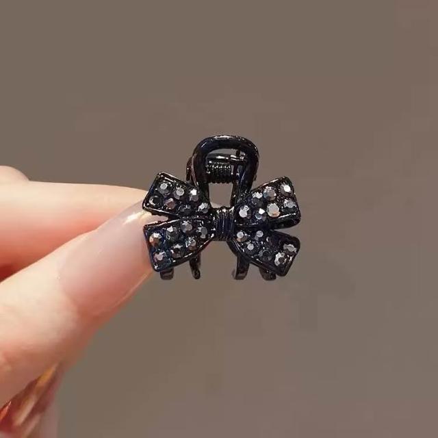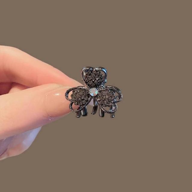 Poem-Acc 黑色精緻迷你鯊魚夾 亮黑水鑽小抓夾 合金劉海夾 黑鑽抓夾 水鑽髮夾 金屬劉海夾