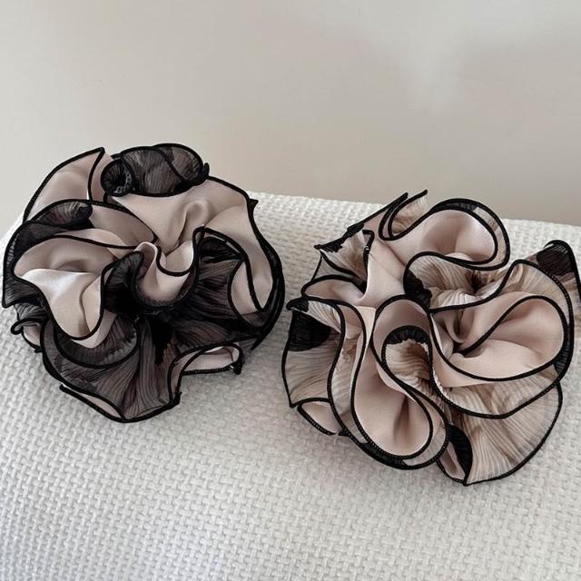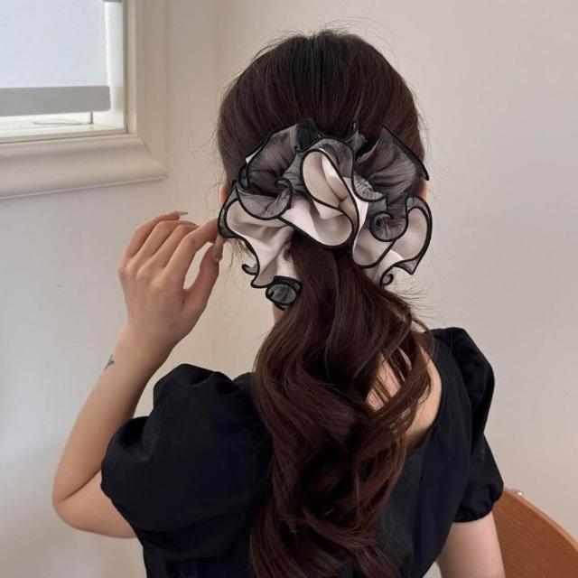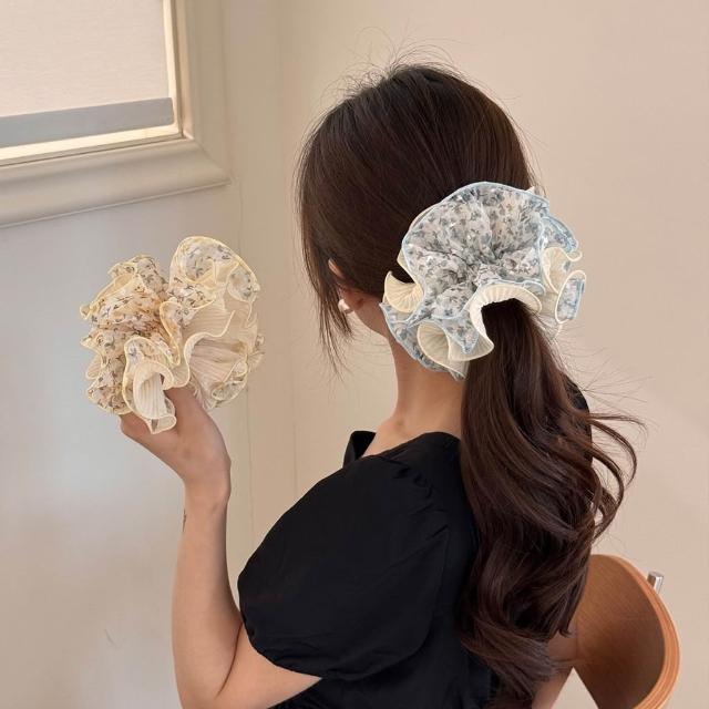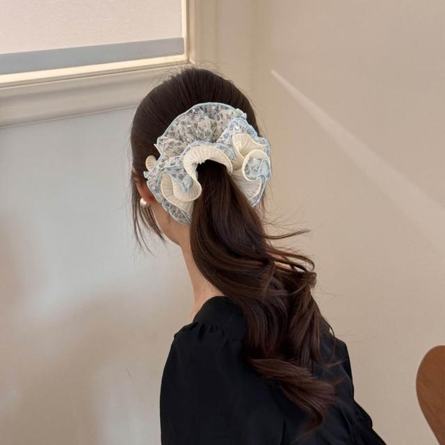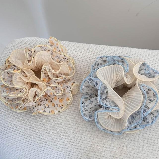 Poem-Acc秋冬皺褶碎花超大大腸髮圈 雙層網紗大腸髮圈 髮圈 丸子頭髮圈 馬尾髮圈 髮飾 飾品