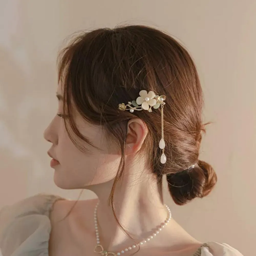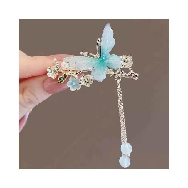 Poem-Acc古風髮夾 流蘇鴨嘴夾 唯美~淸優貝殼花水晶藍鈴花 流蘇髮夾 彈簧夾