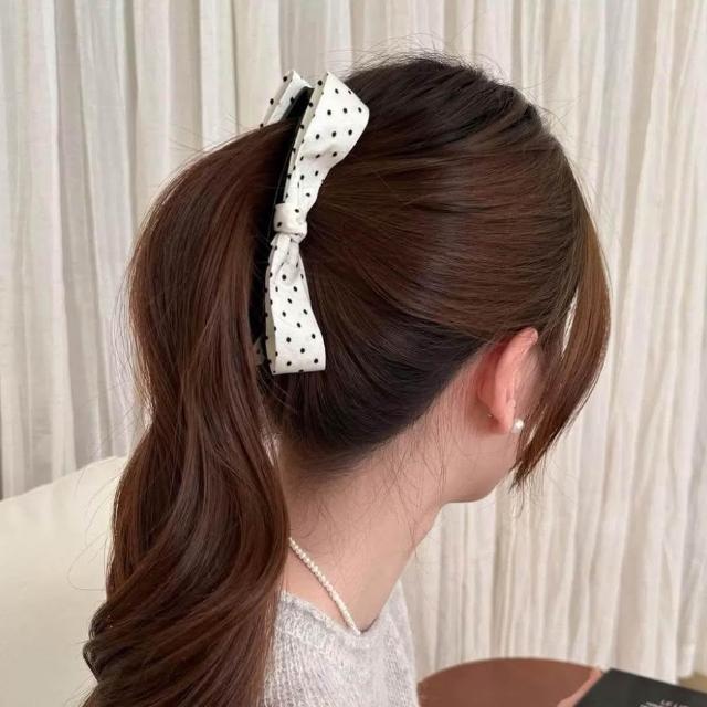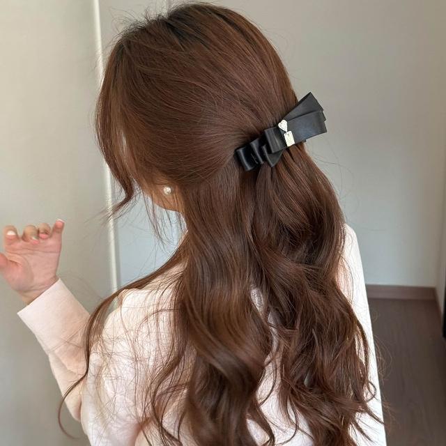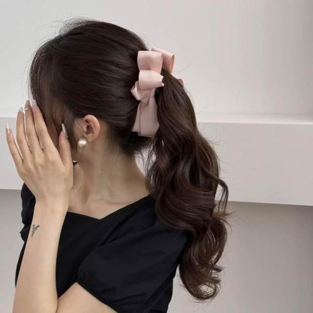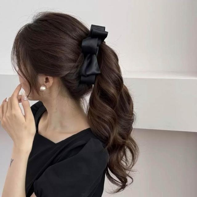 Poem-Acc韓系緞面蝴蝶結香蕉夾 後腦勺抓夾 馬尾髮夾 髮飾品