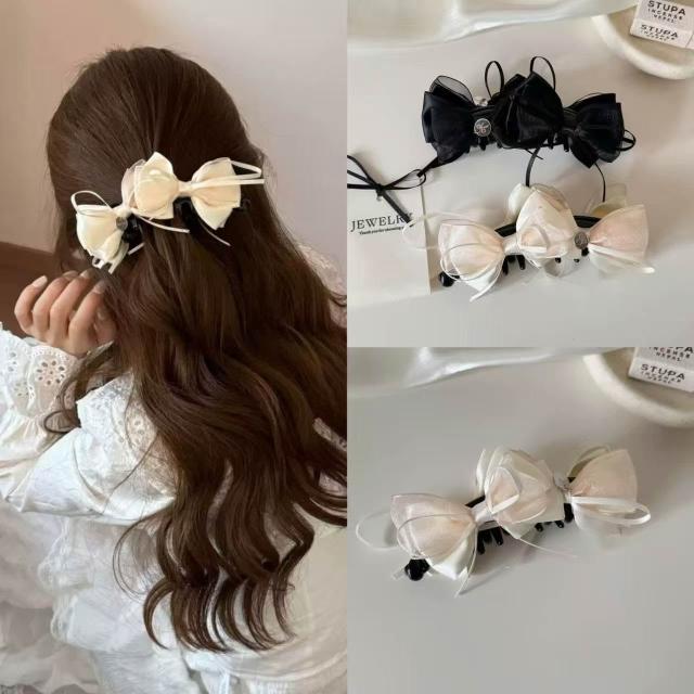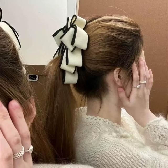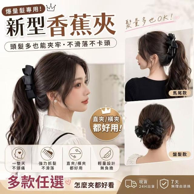 Poem-Acc韓系緞面蝴蝶結香蕉夾 大香蕉夾 後腦勺抓夾 馬尾髮夾 髮飾品