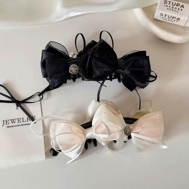 Poem-Acc韓系緞面蝴蝶結香蕉夾 大香蕉夾 後腦勺抓夾 馬尾髮夾 髮飾品