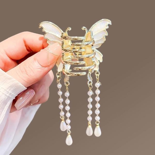 Poem-Acc新中式蝴蝶流蘇抓夾 仙氣蝴蝶流蘇髮夾 公主頭髮夾 髮飾 飾品