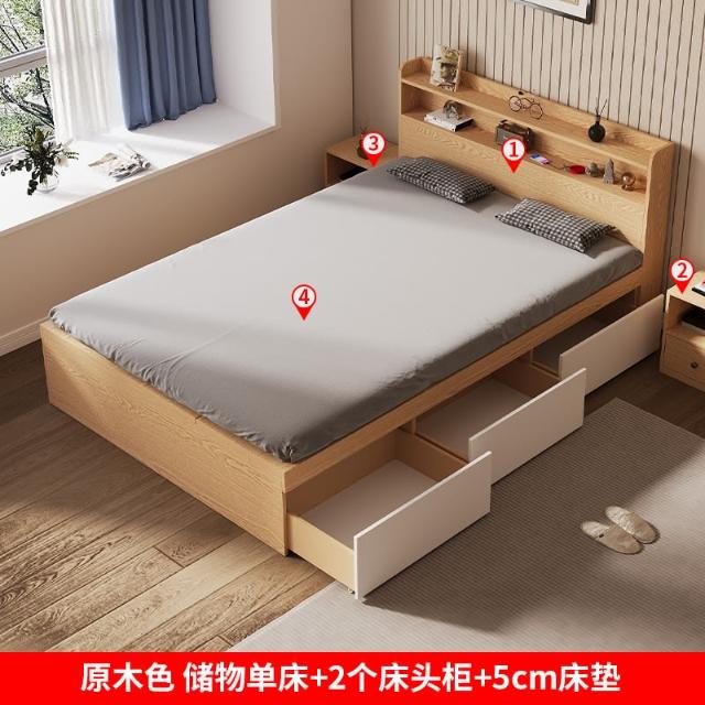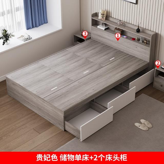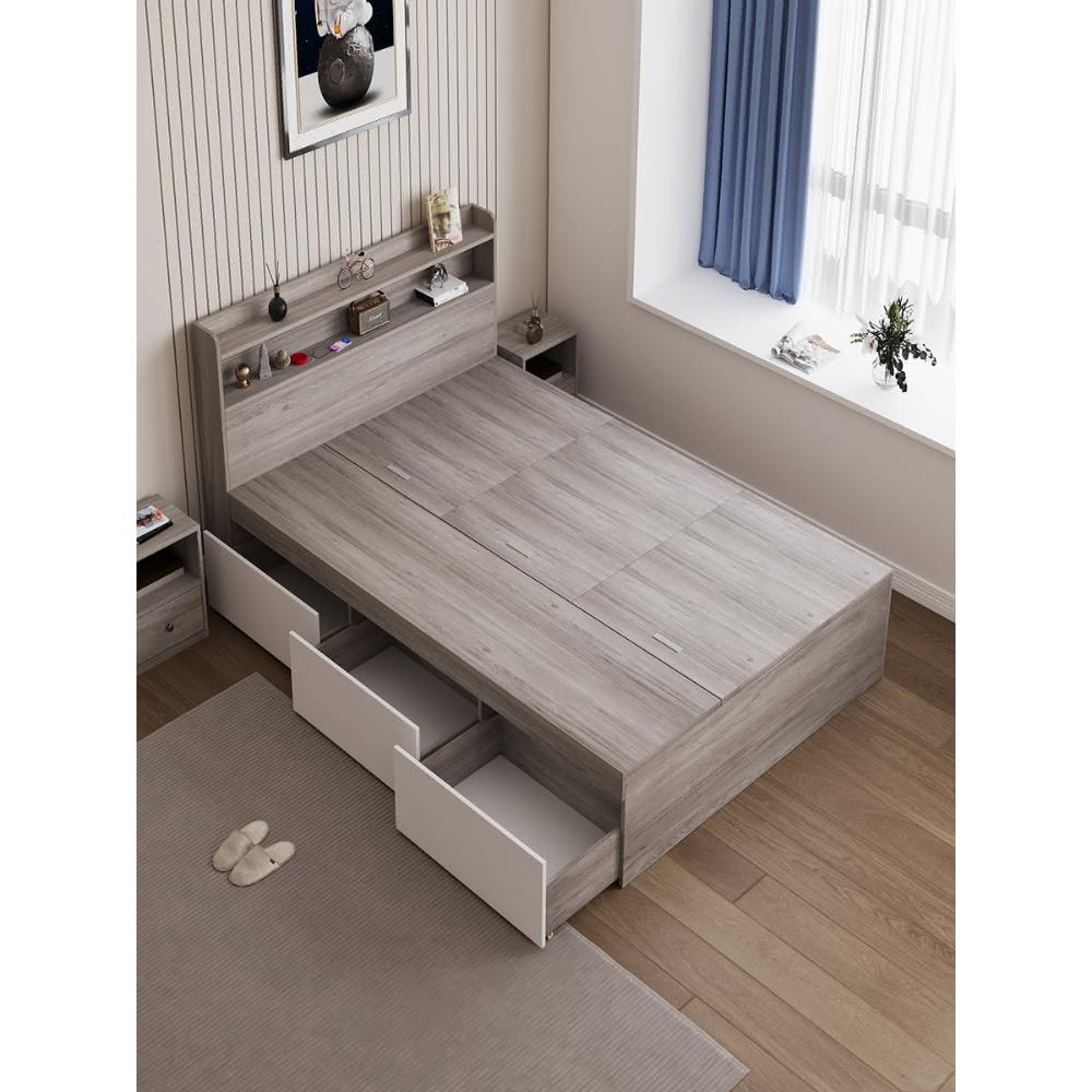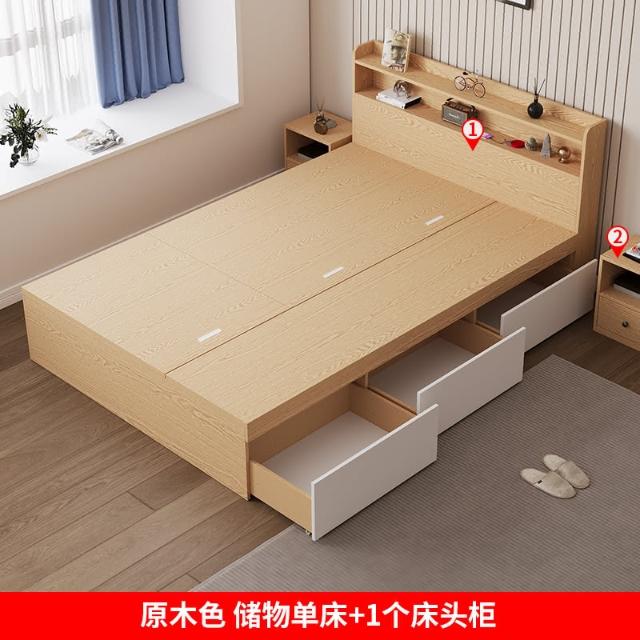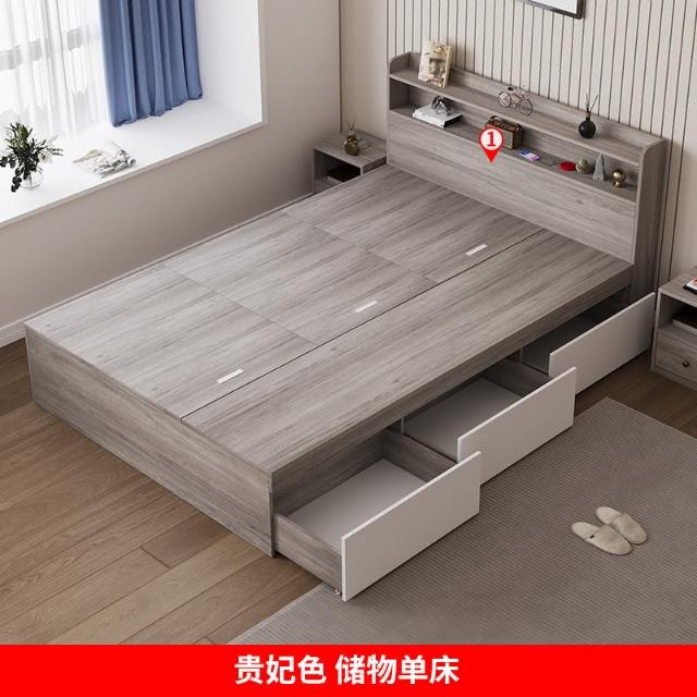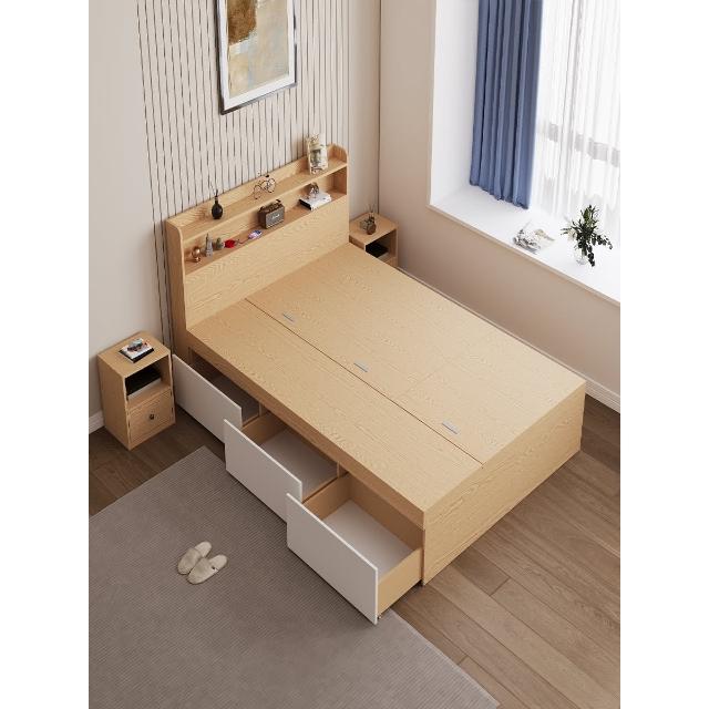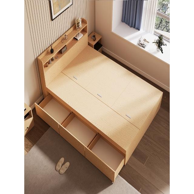 榻榻米床1.8米現代簡約主臥雙人床實板式床1.5米高箱收納儲物木床