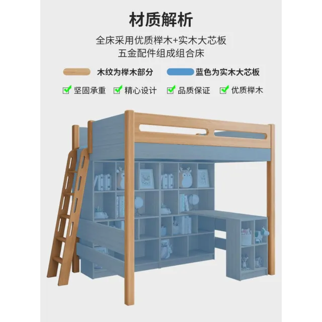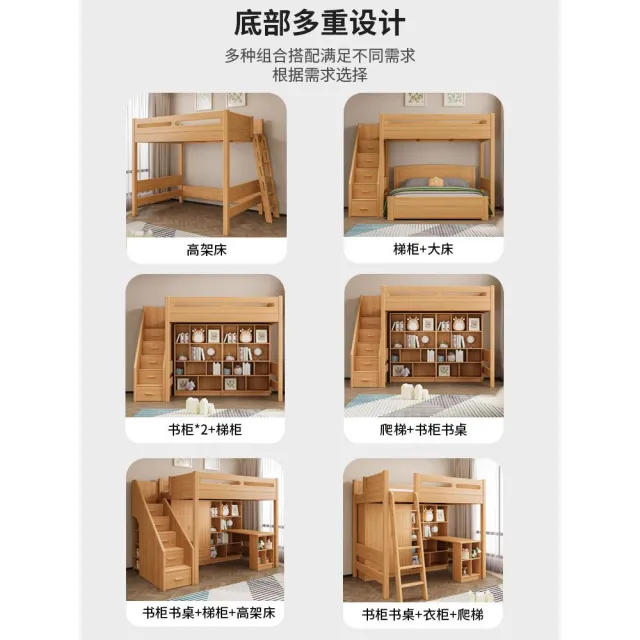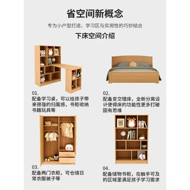 上床下桌組合床兒童床書桌一體小戶型上下床實木衣櫃上下鋪高架床