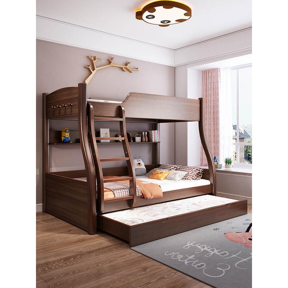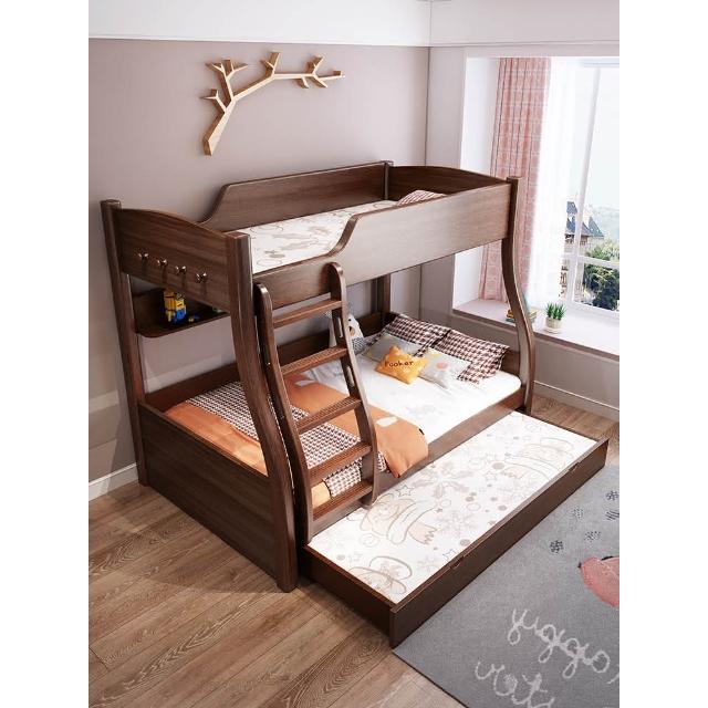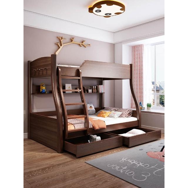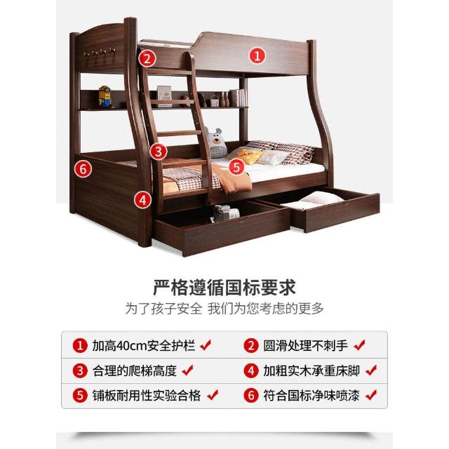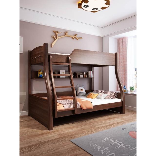 家用小戶型兒童上下床雙層床深胡桃色大人上下鋪子母床兩層高低床