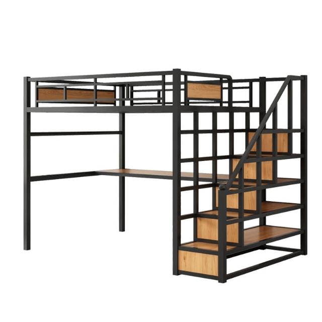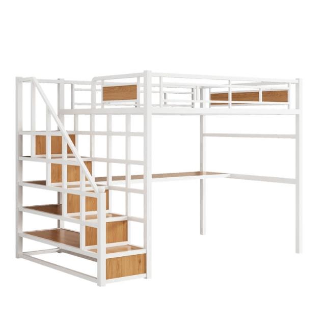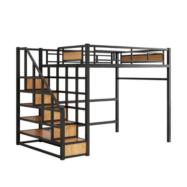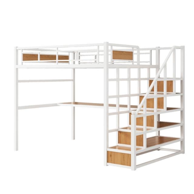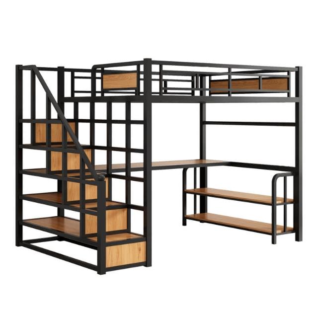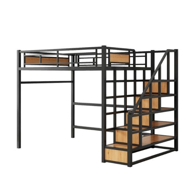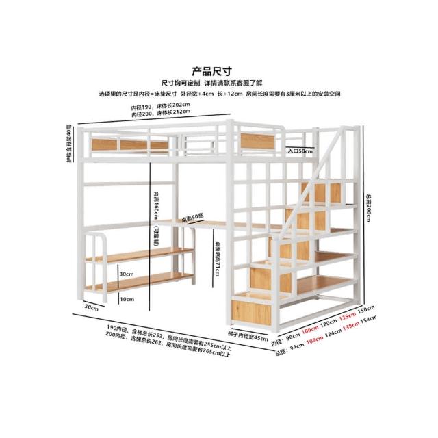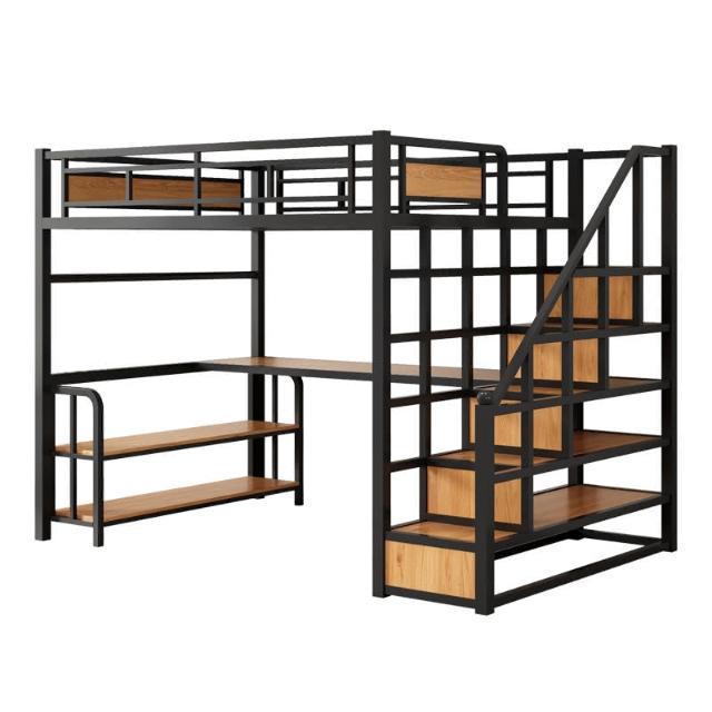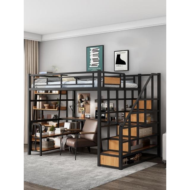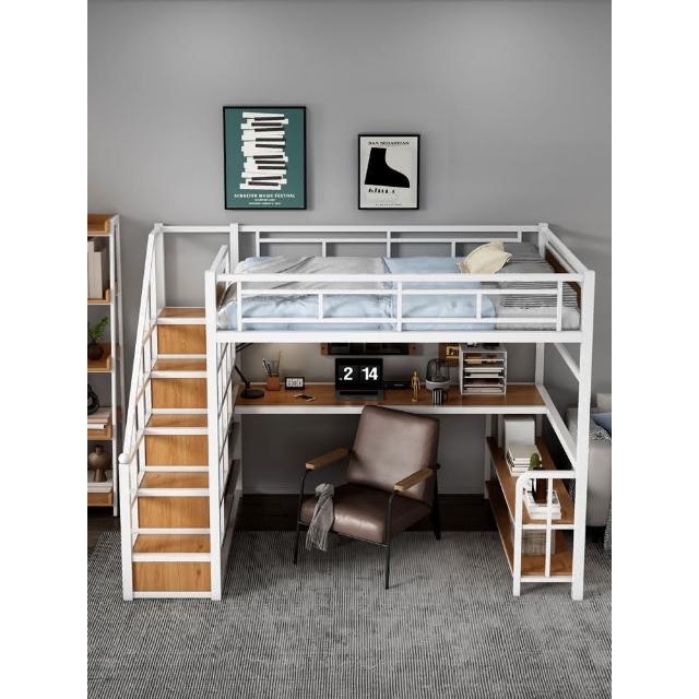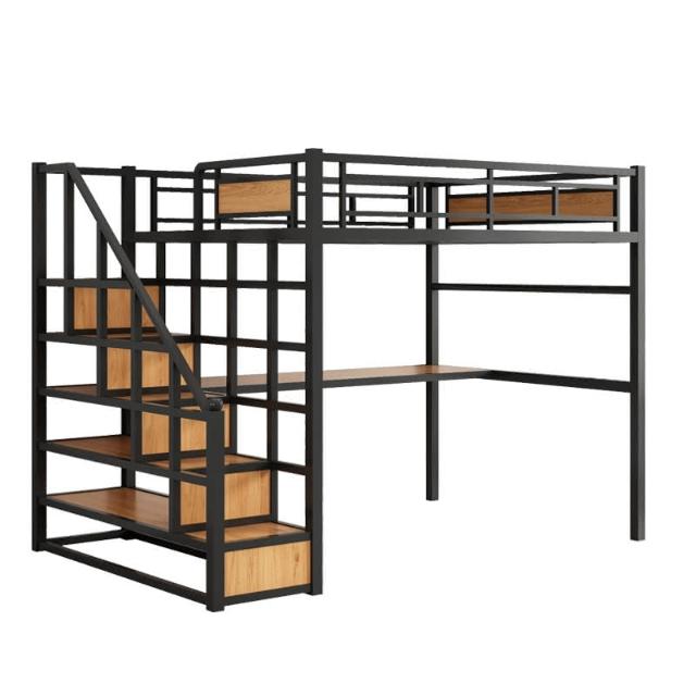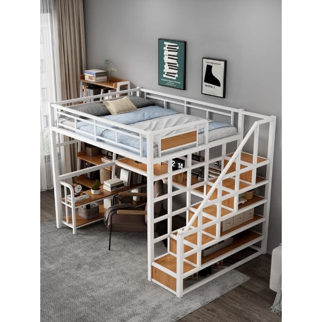鐵藝高架床單上層省空間閣樓式步梯二樓床家用上床下桌高低床定制
