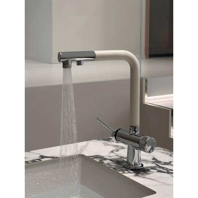 日式奶白三合一水龍頭廚房洗菜盆水槽三用多功能淨水抽拉龍頭冷熱