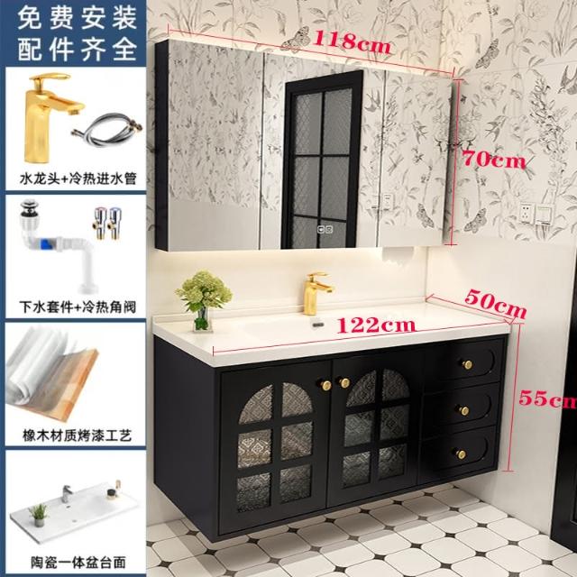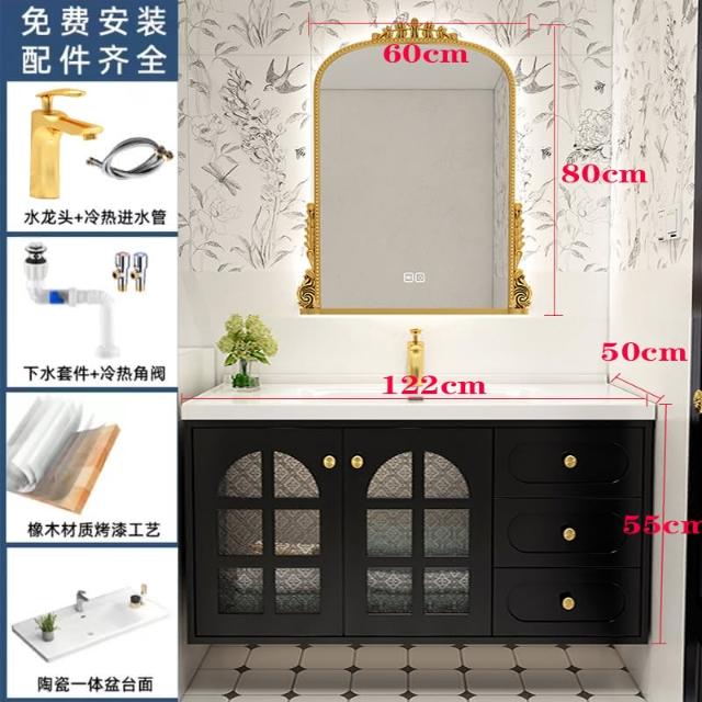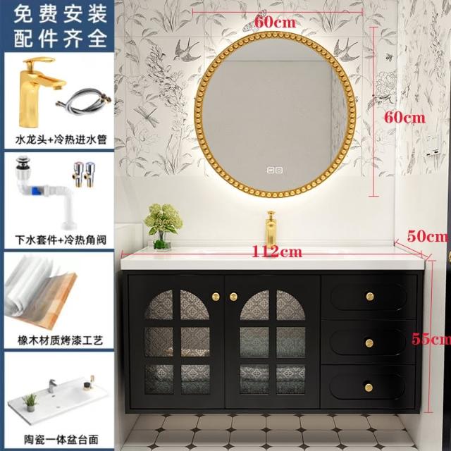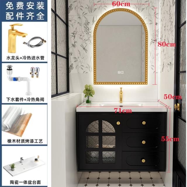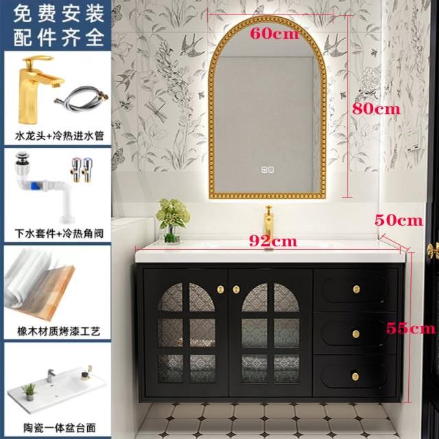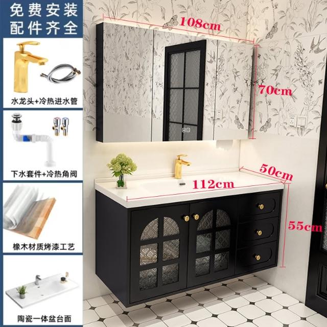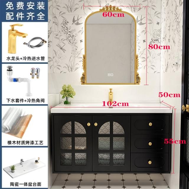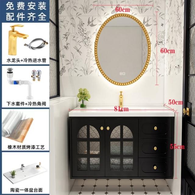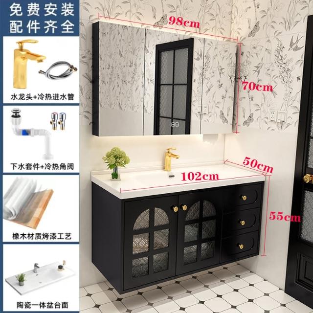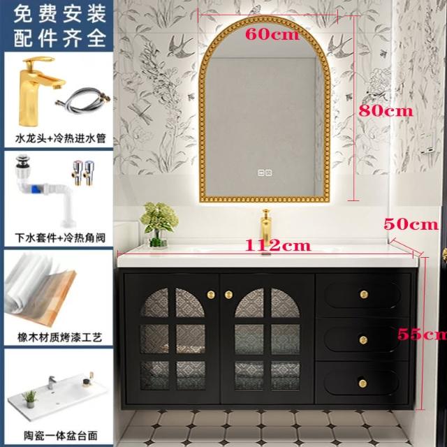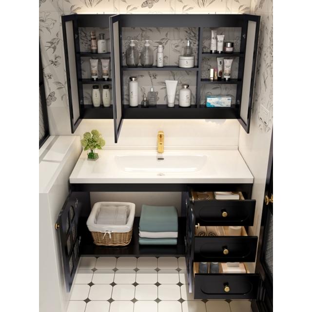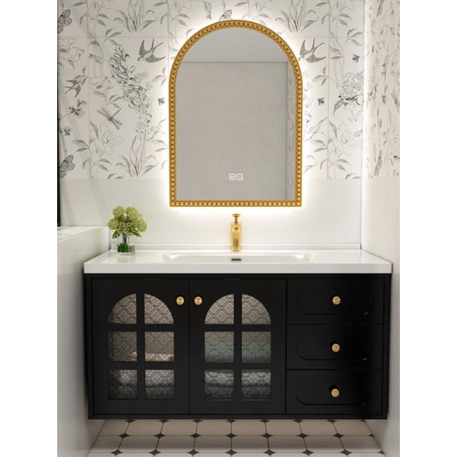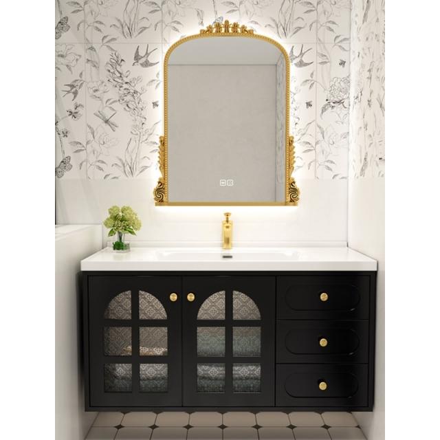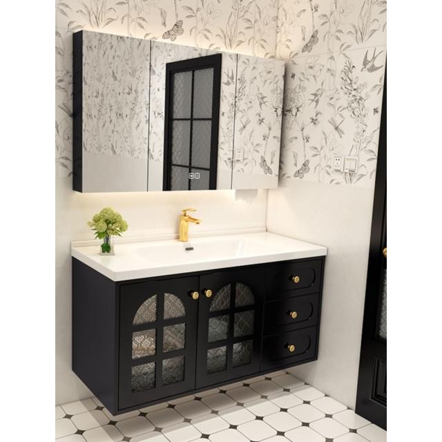 法式復古風浴室櫃組合黑色衛浴櫃洗漱臺智能簡約洗臉池洗手臺盆櫃