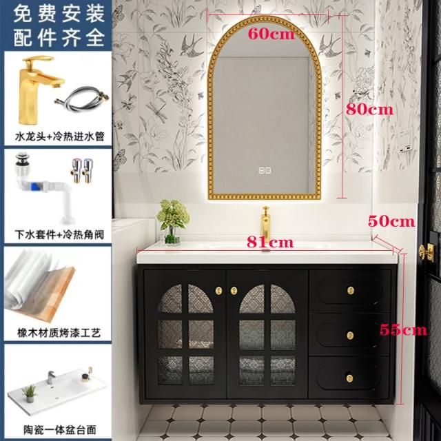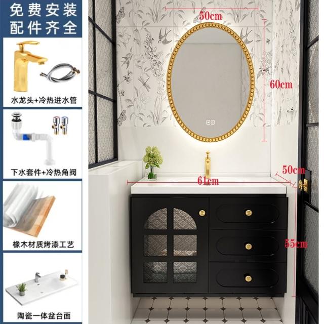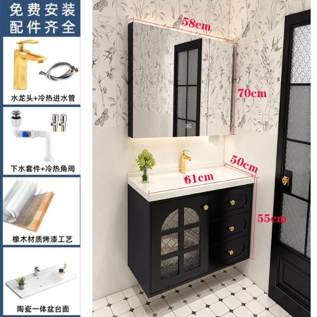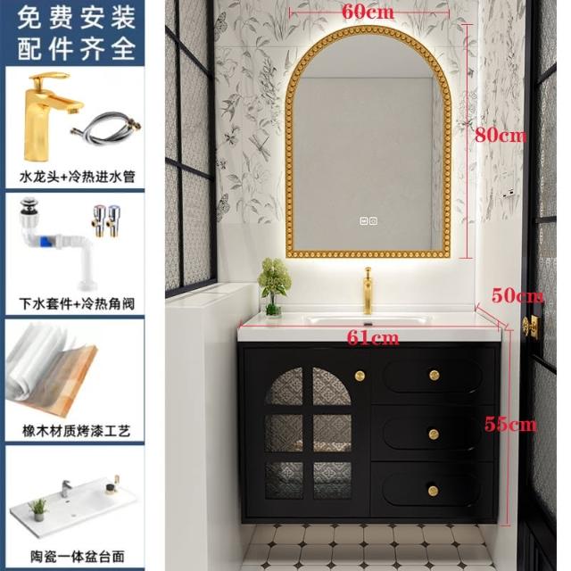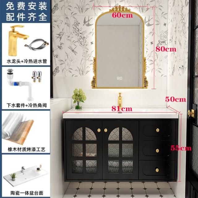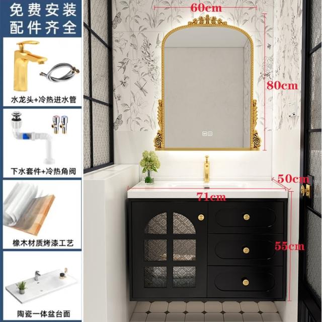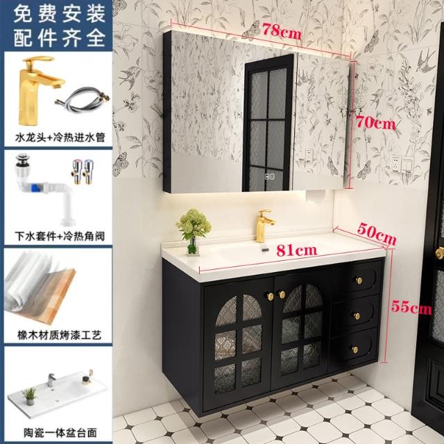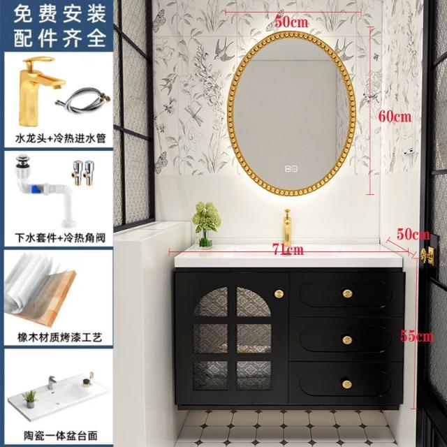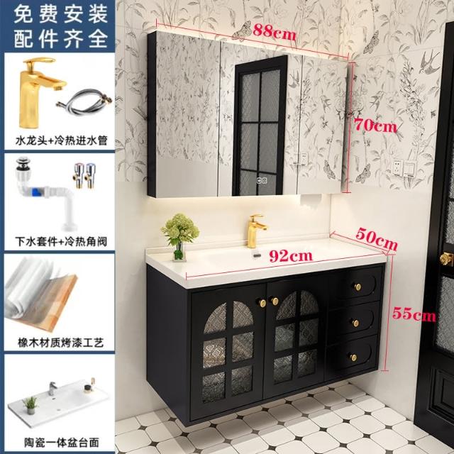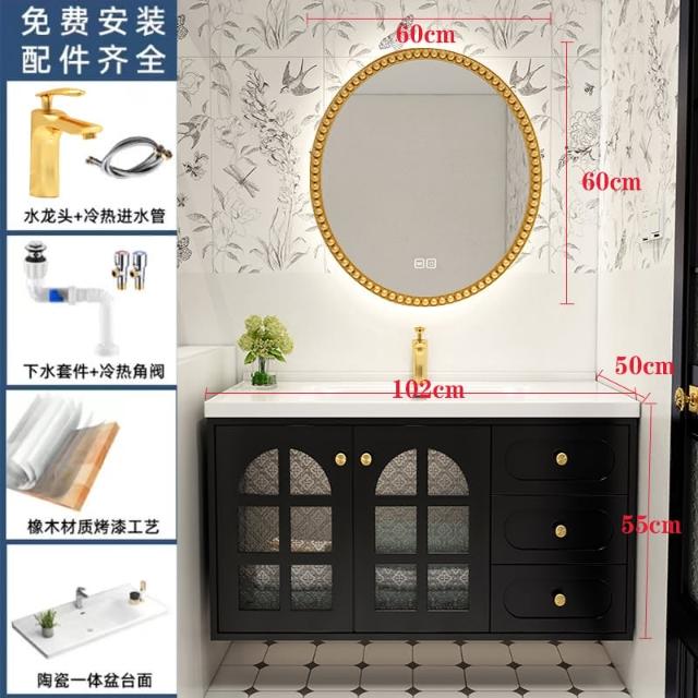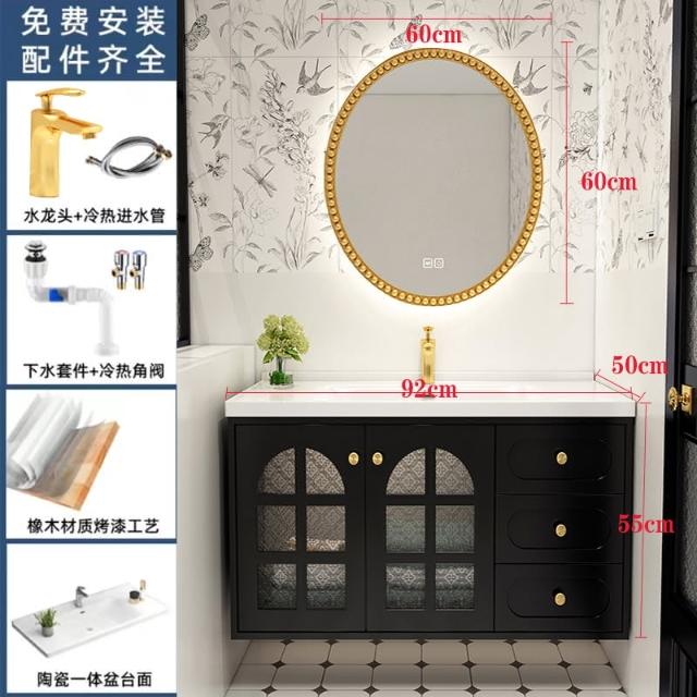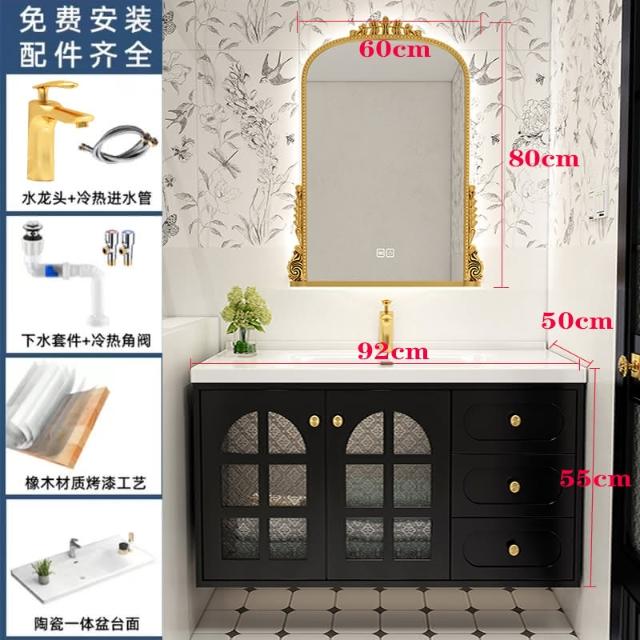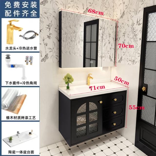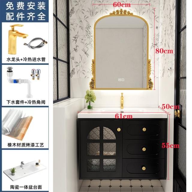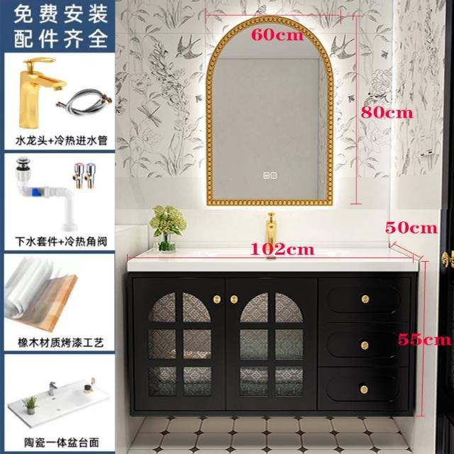 法式復古風浴室櫃組合黑色衛浴櫃洗漱臺智能簡約洗臉池洗手臺盆櫃