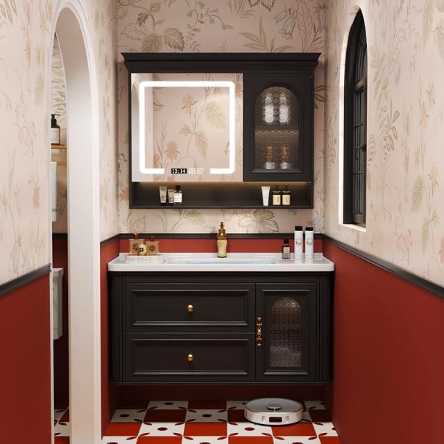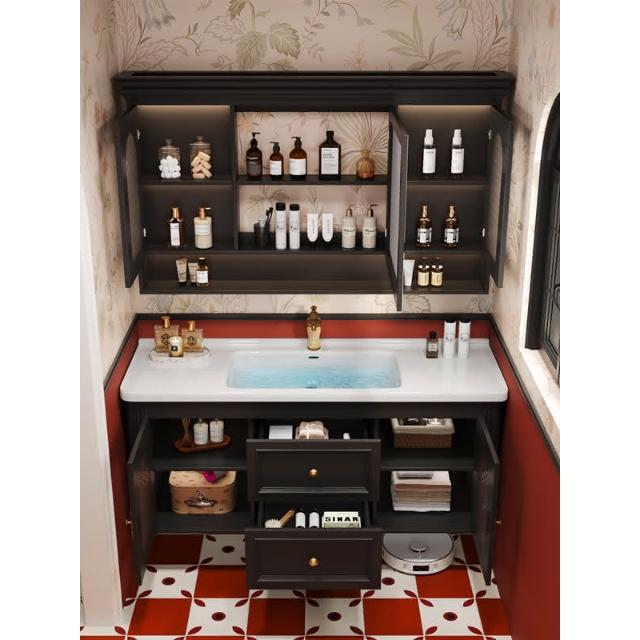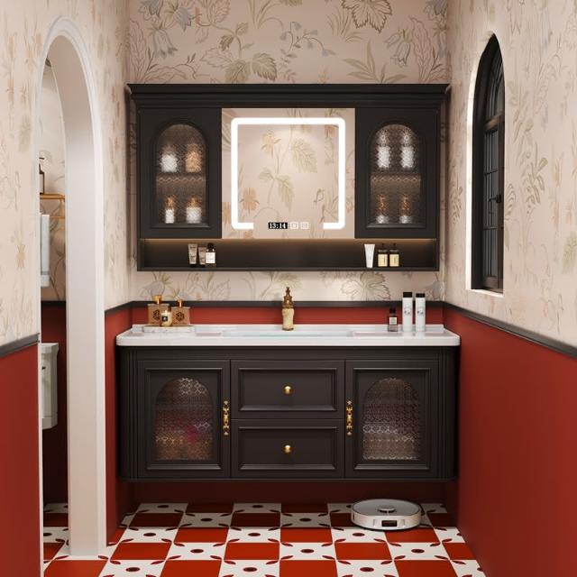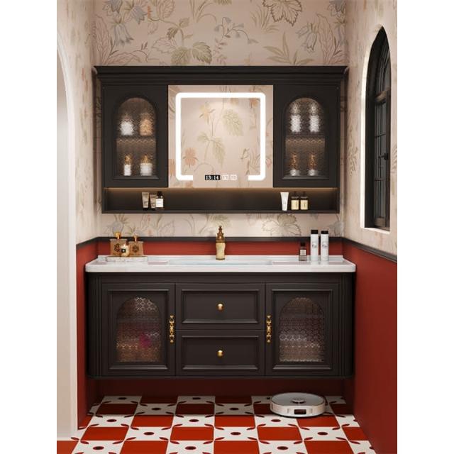 法式復古浴室櫃組合美式輕奢實木陶瓷一體盆衛浴櫃洗手洗臉洗漱臺