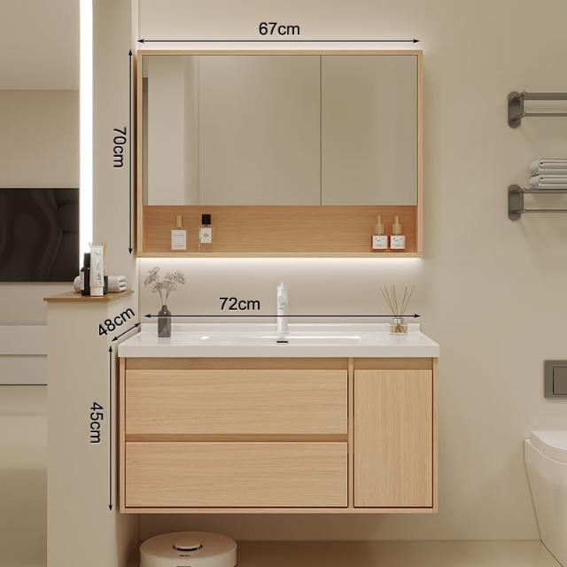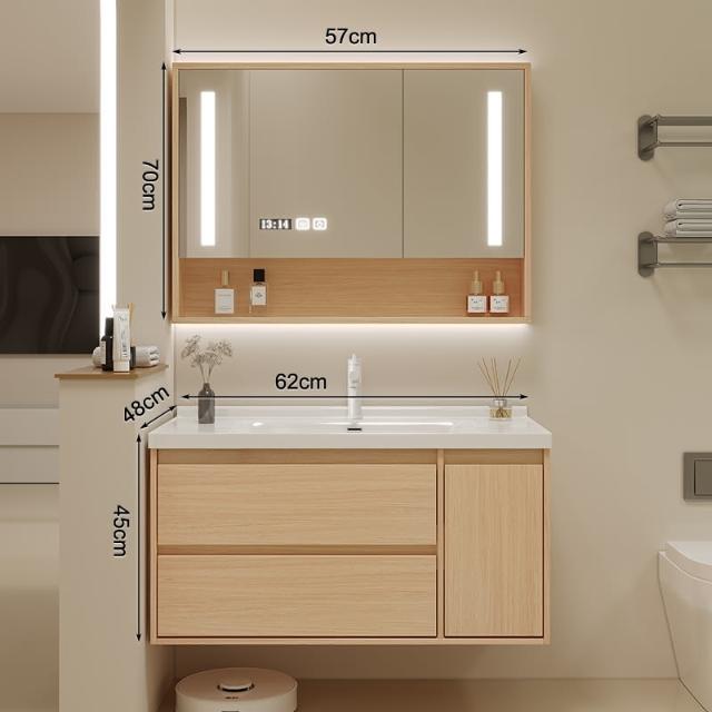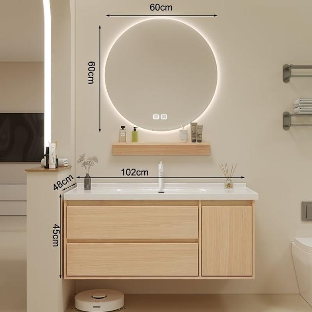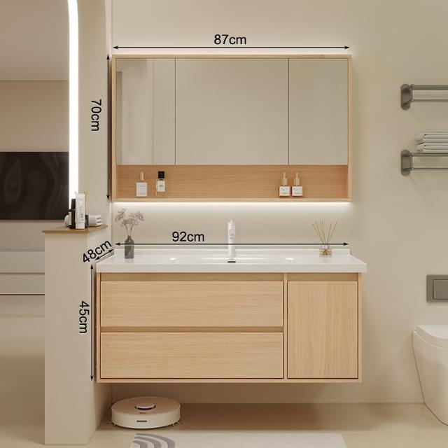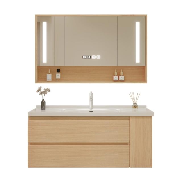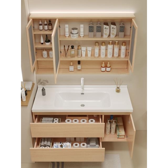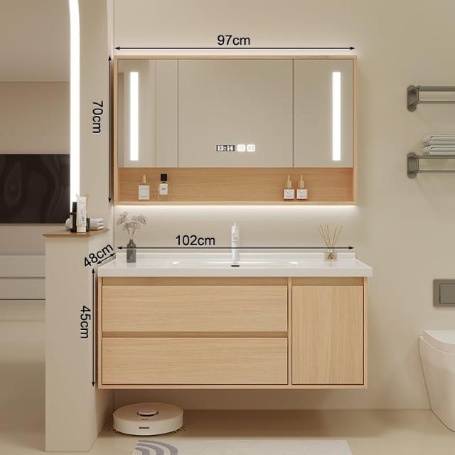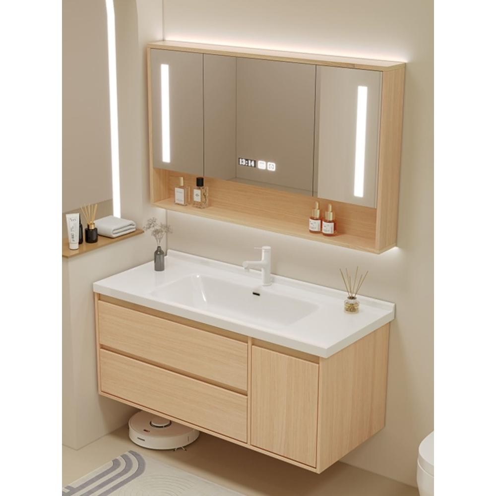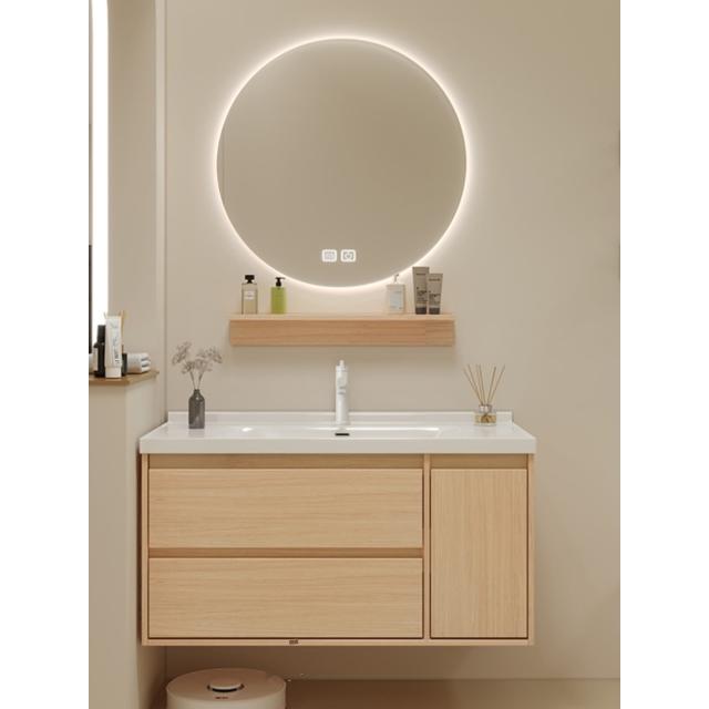 原木色浴室櫃現代簡約智能洗臉盆櫃組合陶瓷一體洗漱臺衛浴櫃組合