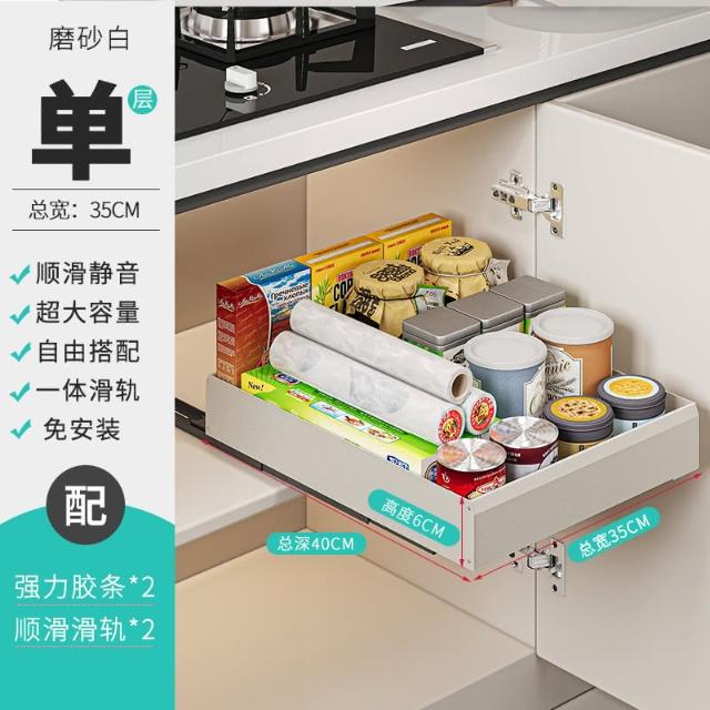 廚房轉角拉籃櫥櫃內置物架滑軌抽屜式窄櫃超深櫃調味料收納框單層