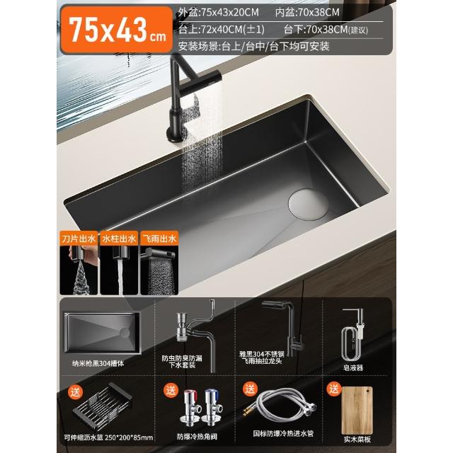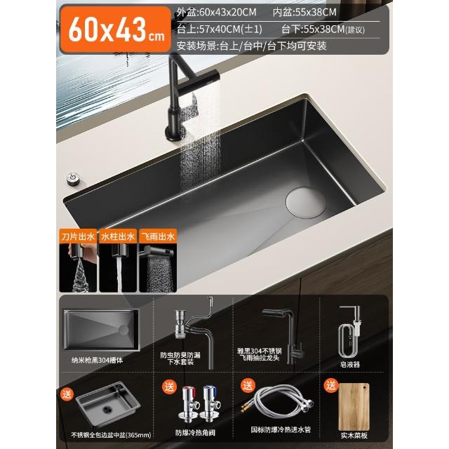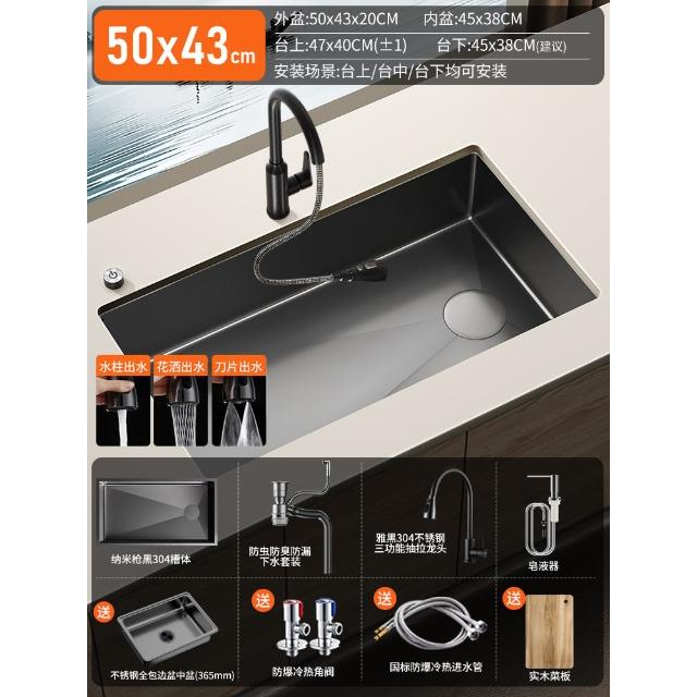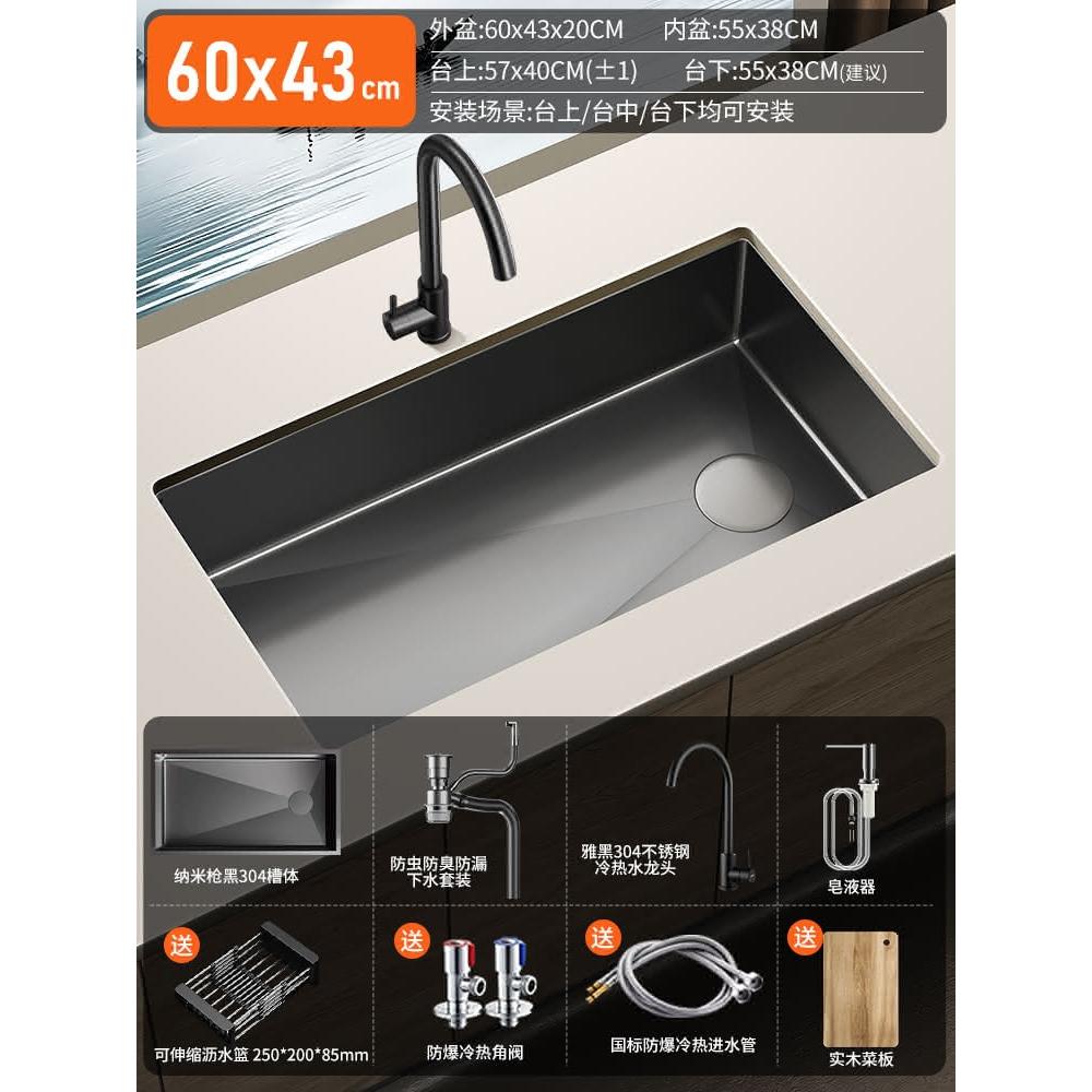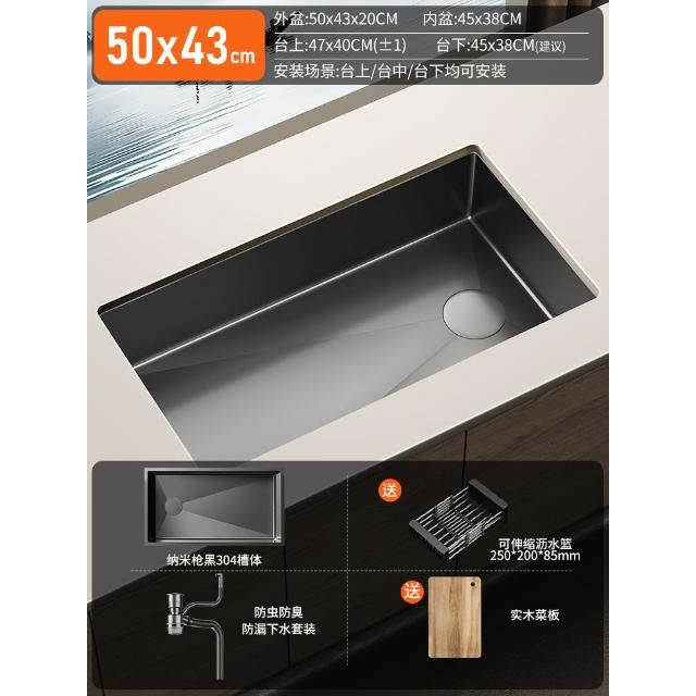 304不銹鋼納米水槽洗菜盆大單槽家用廚房菜盆洗碗槽池台下盆手工