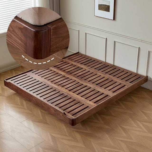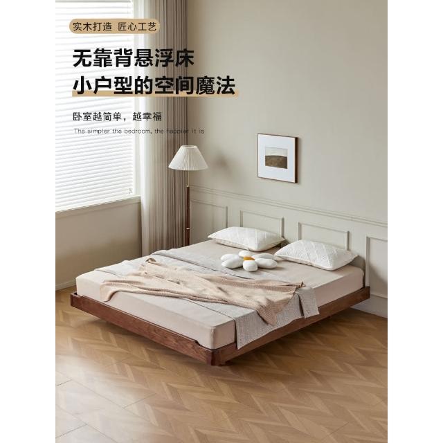 北美黑胡桃木無床頭床懸浮床榻榻米床日式簡約矮床小戶型全實木床