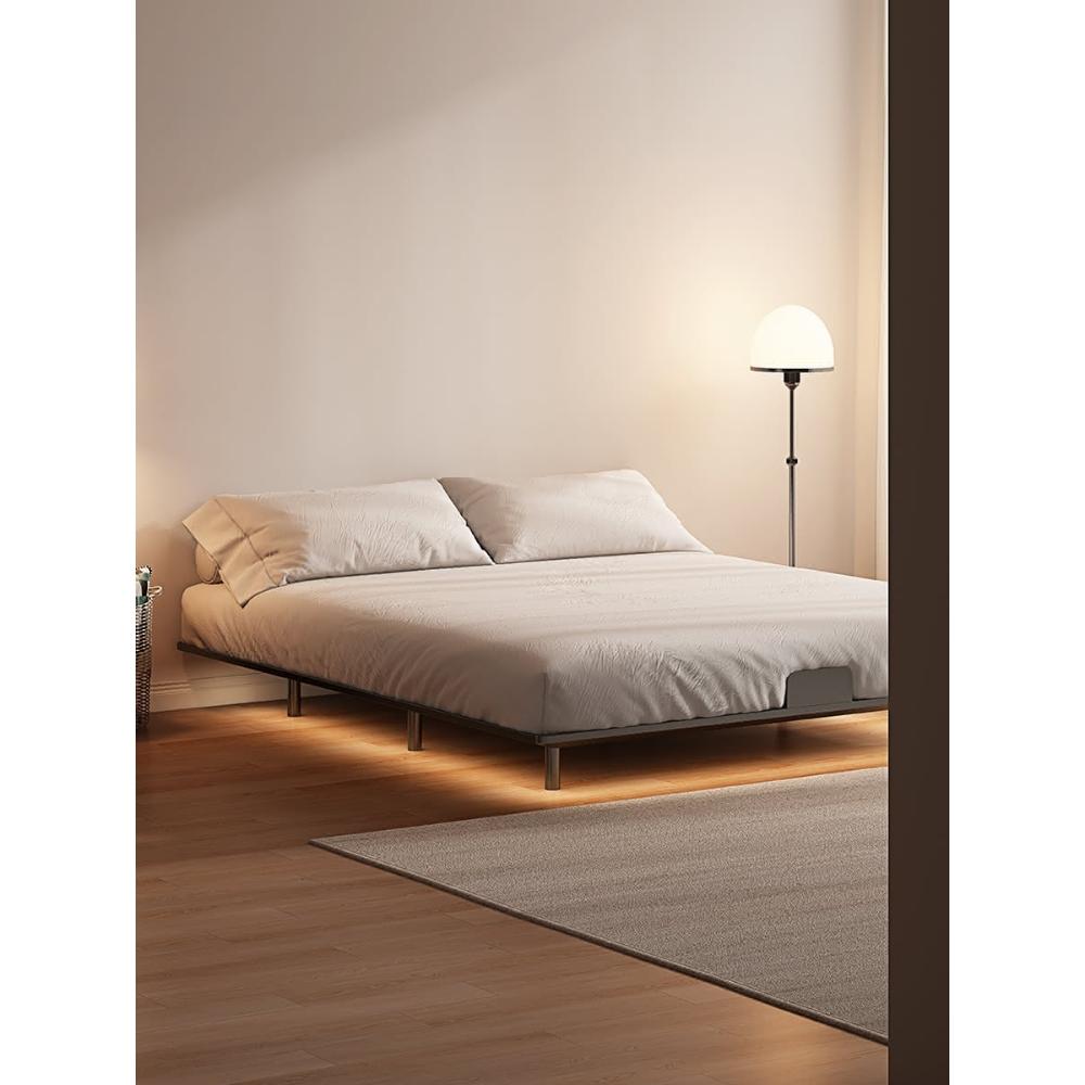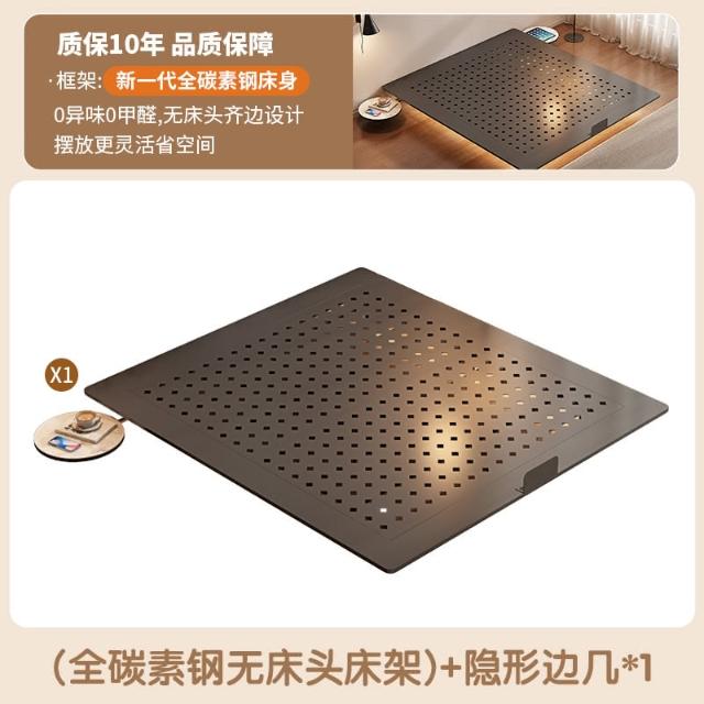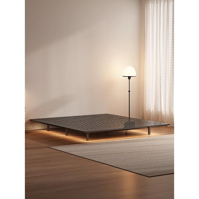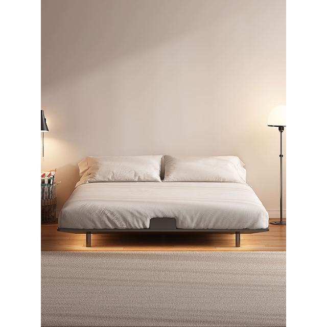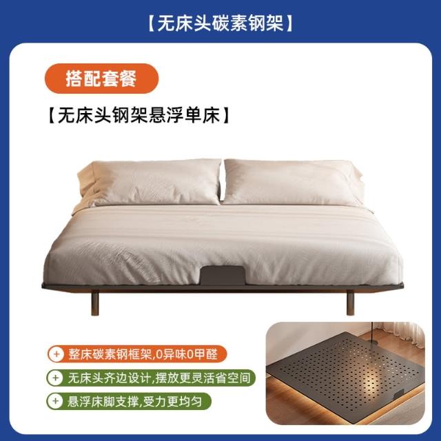 2024新款碳素鋼床架小戶型臥室無床頭懸浮床無靠背床侘寂奶油風