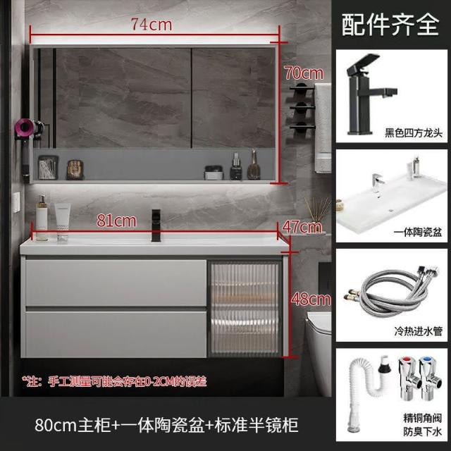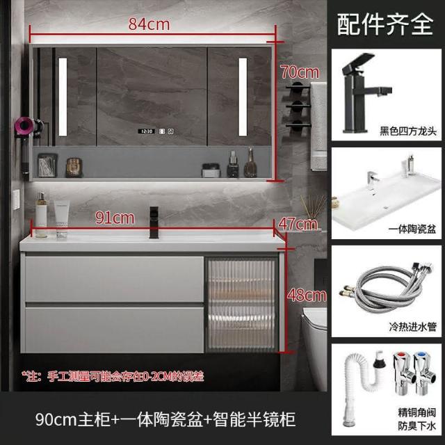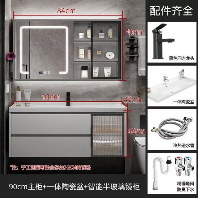 現代簡約浴室櫃輕奢衛生間智能組合洗臉洗手衛浴櫃陶瓷一體洗漱臺