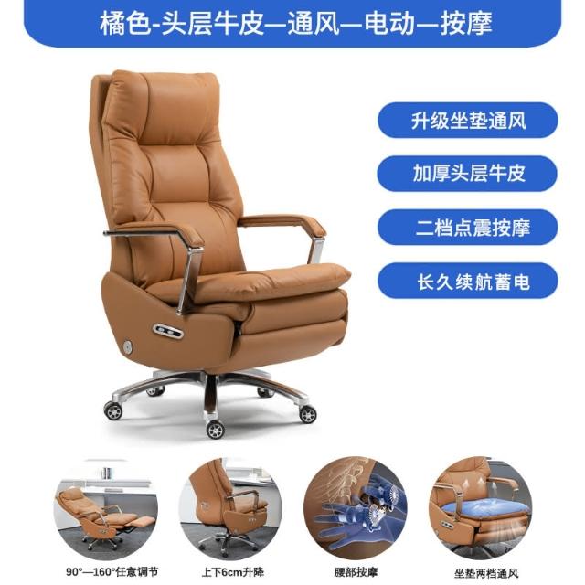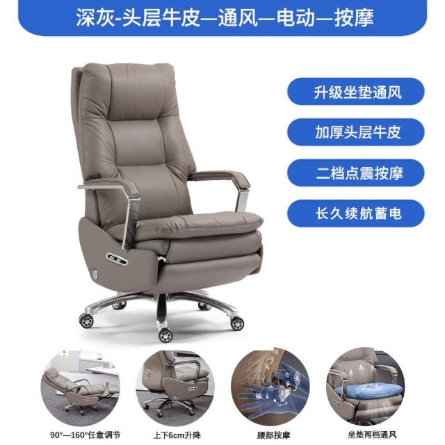 伯格森真皮電動老闆椅辦公室舒適久坐按摩午睡躺椅電腦椅辦公椅