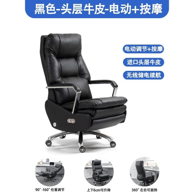 伯格森真皮電動老闆椅辦公室舒適久坐按摩午睡躺椅電腦椅辦公椅