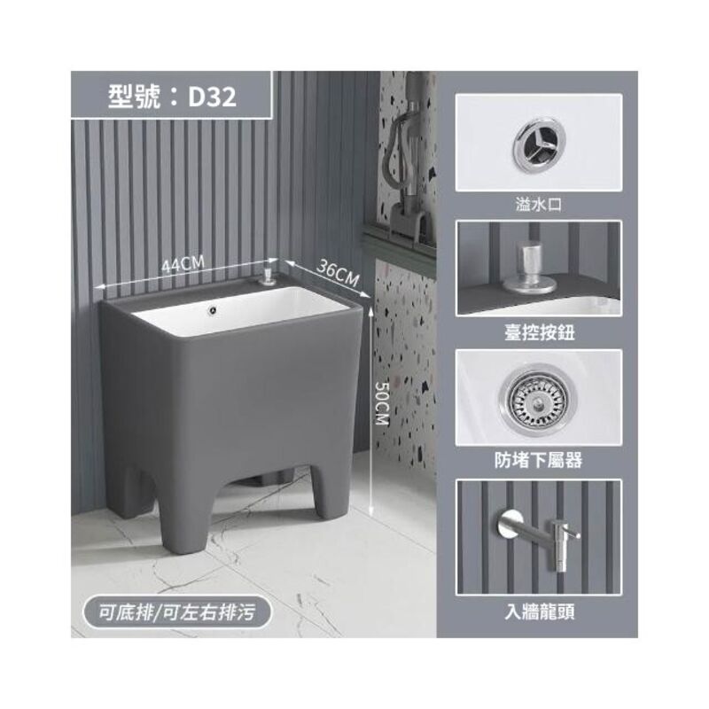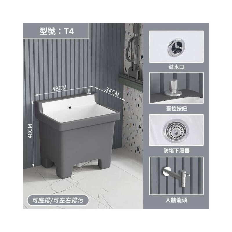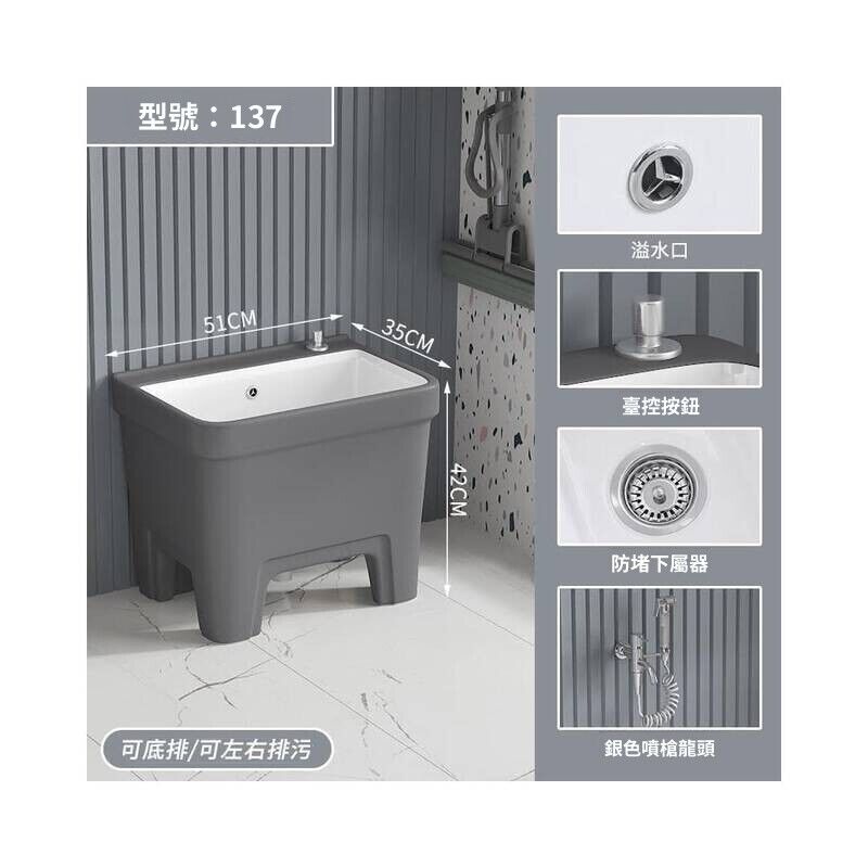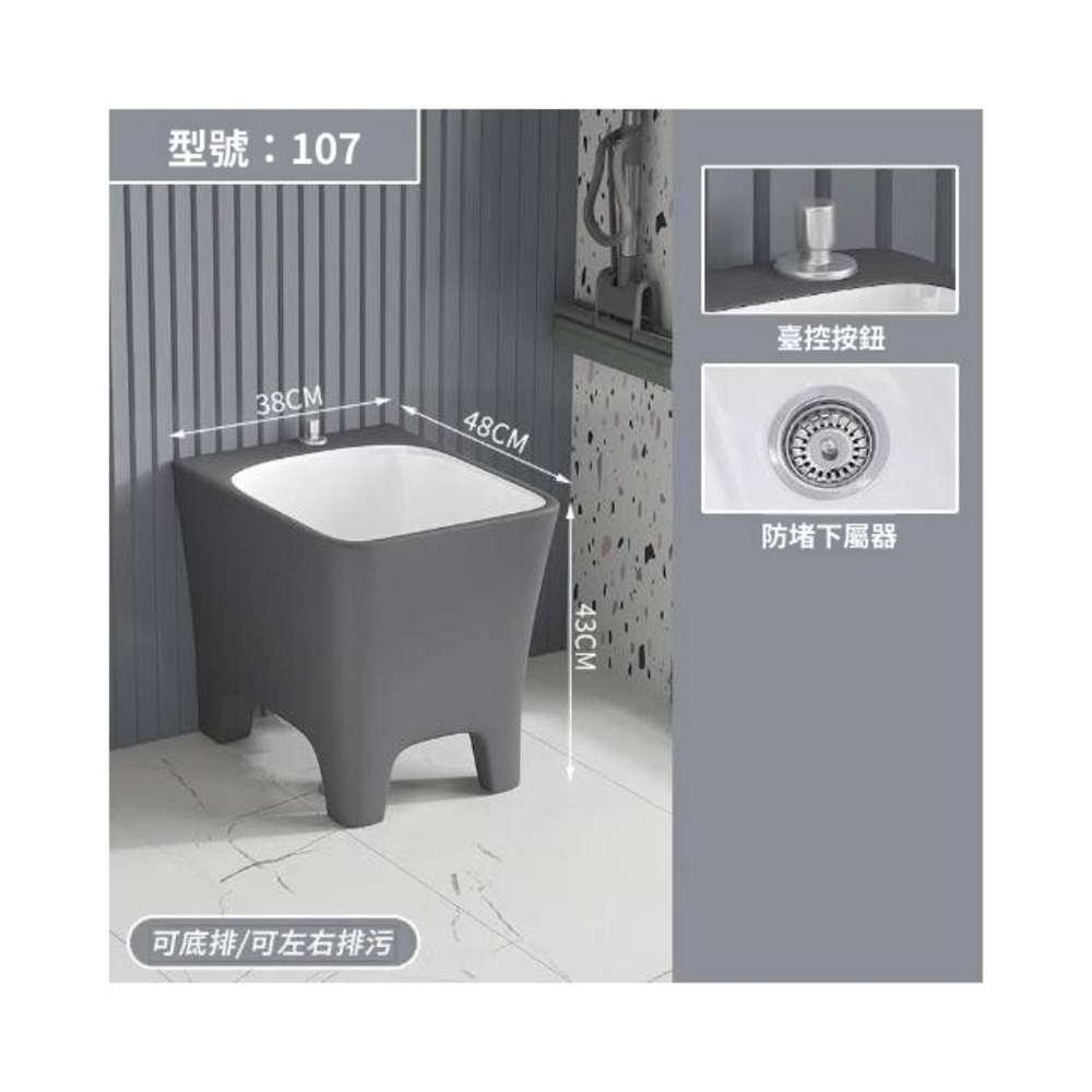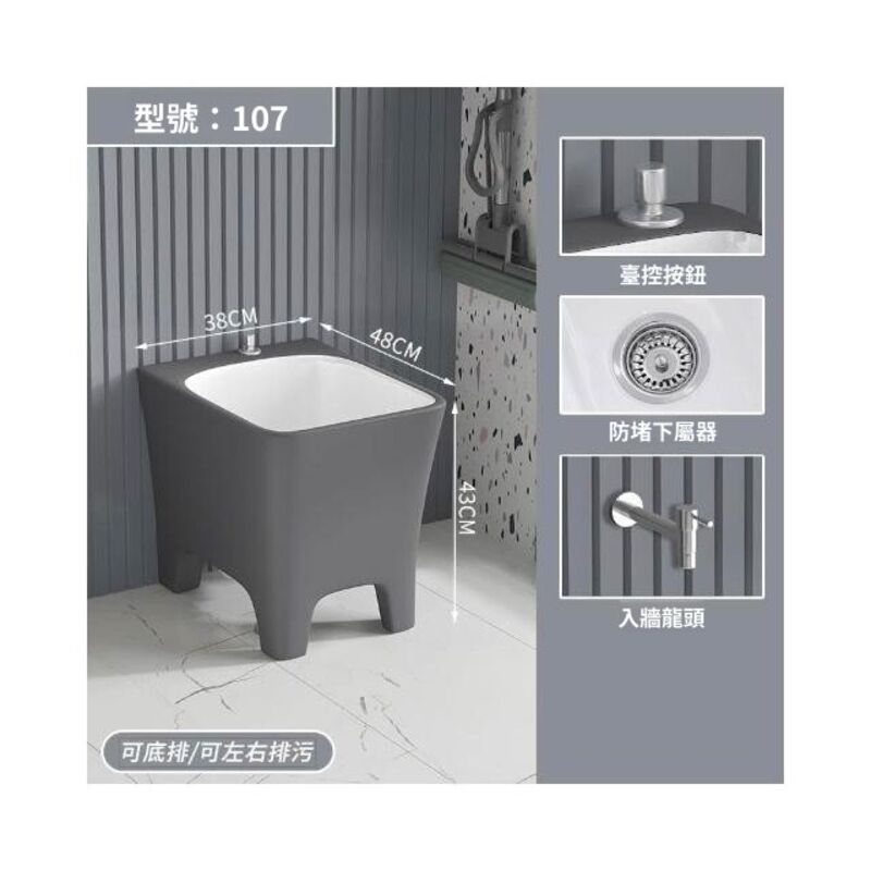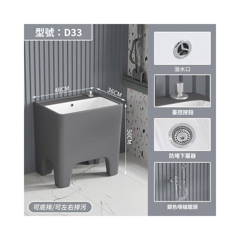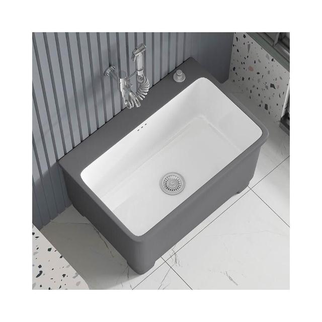 北歐灰色高腳拖把池陶瓷家用陽臺衛生間拖布池四角墩布池洗拖布盆 水槽 落地水槽 廚房水槽