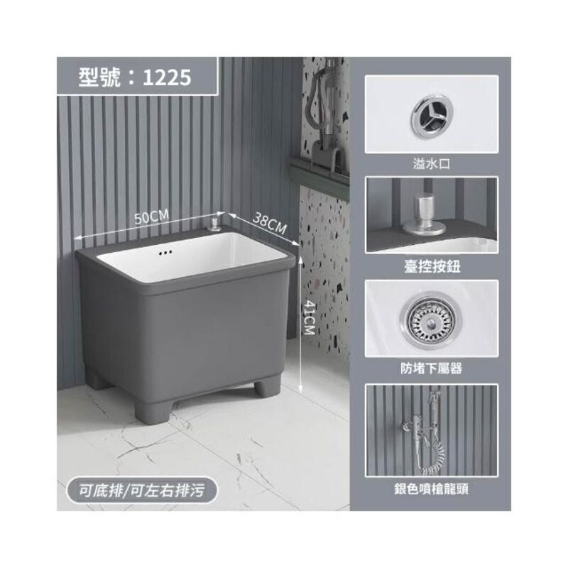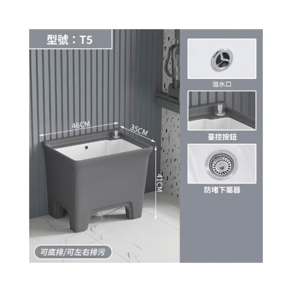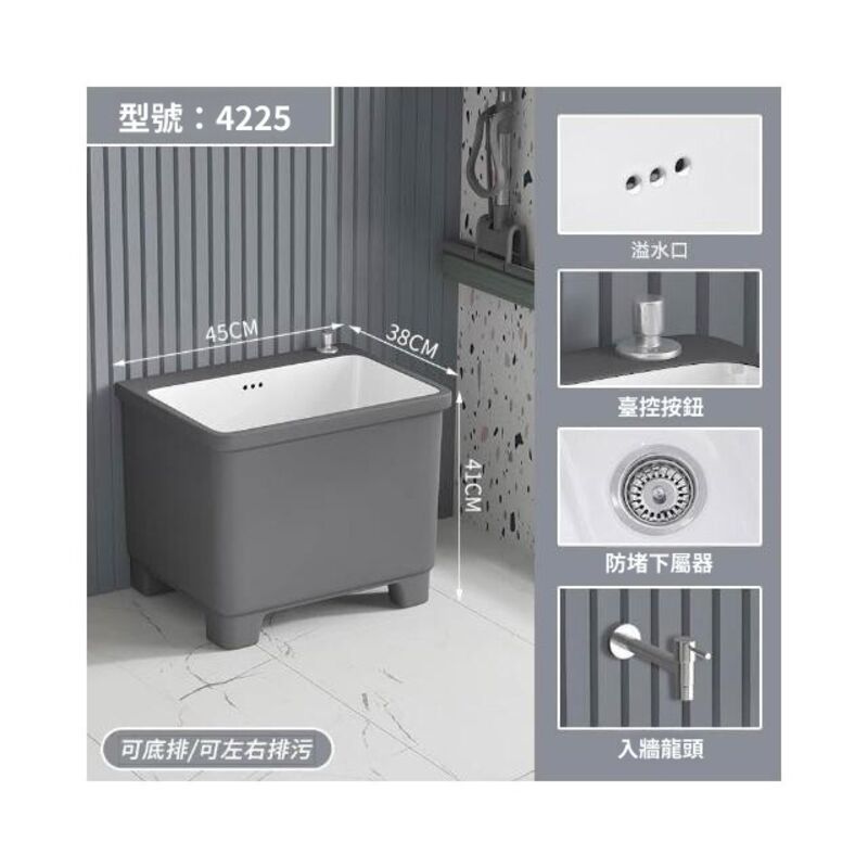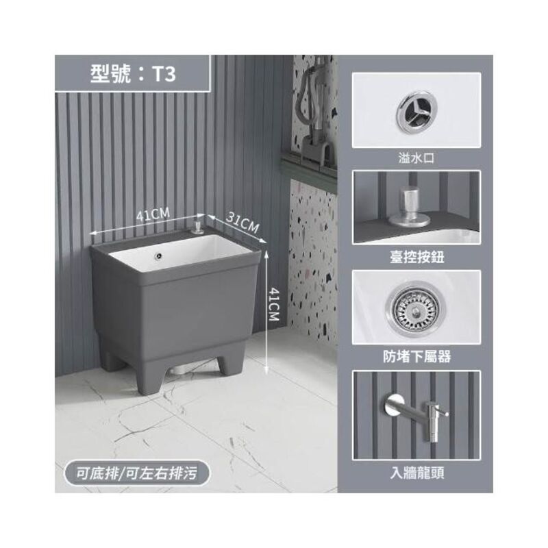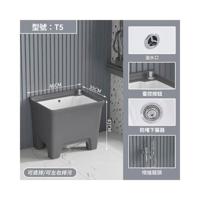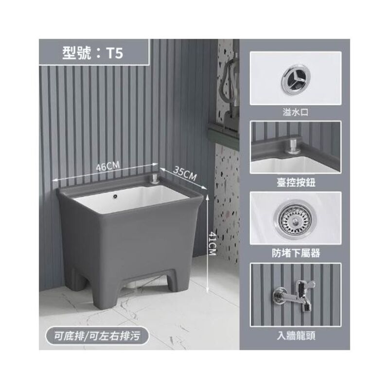 北歐灰色高腳拖把池陶瓷家用陽臺衛生間拖布池四角墩布池洗拖布盆 水槽 落地水槽 廚房水槽