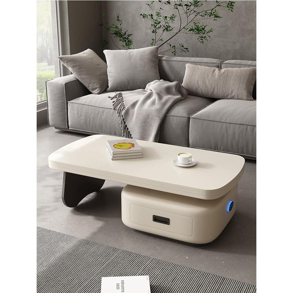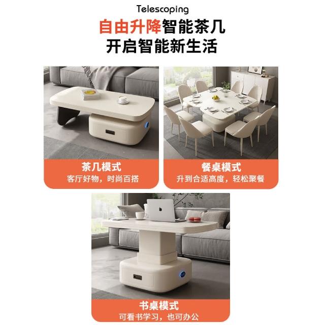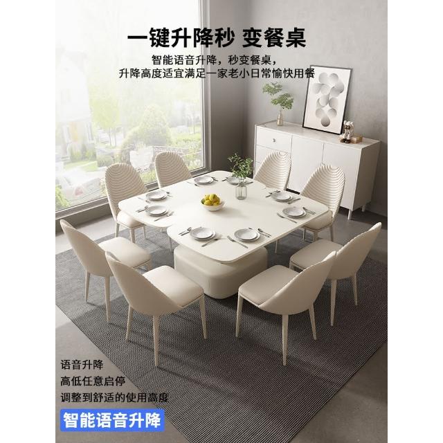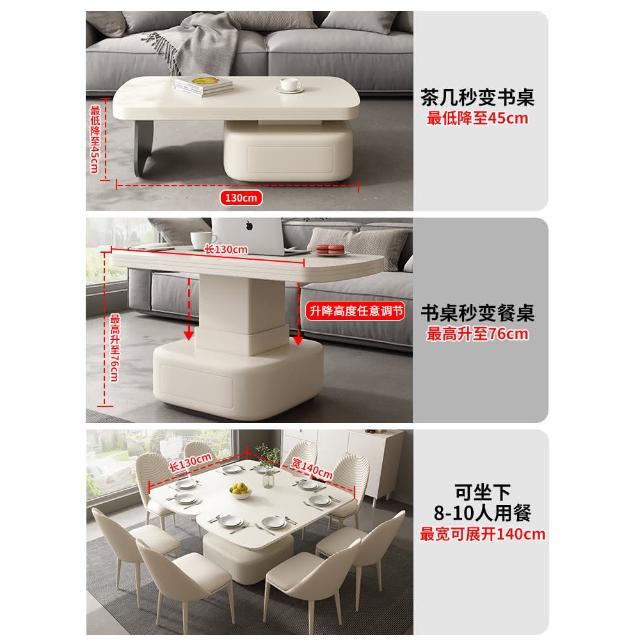 電動升降茶几餐桌兩用多功能折疊餐桌二合一奶油風簡約可移動茶几