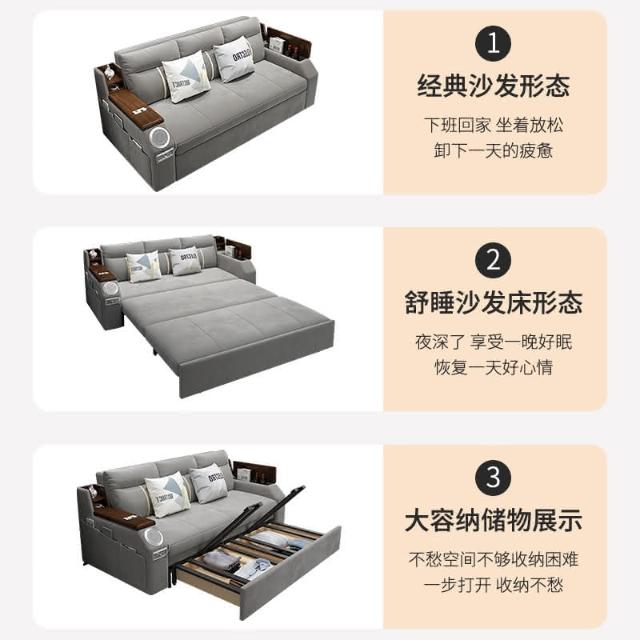 實木沙發床 沙發床 單人沙發 兩人沙發 收納床 兩用可折疊多功能小戶型北歐客廳伸縮推拉床帶儲物沙發