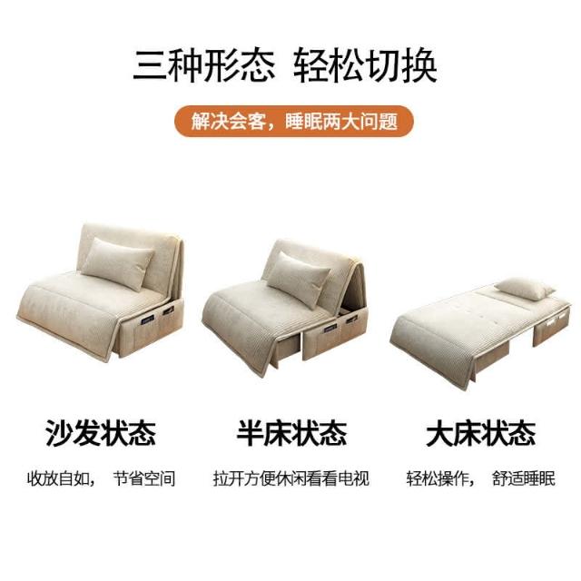 智能電動沙發床兩用可摺疊小戶型多功能臥室客廳單人辦公室科技布
